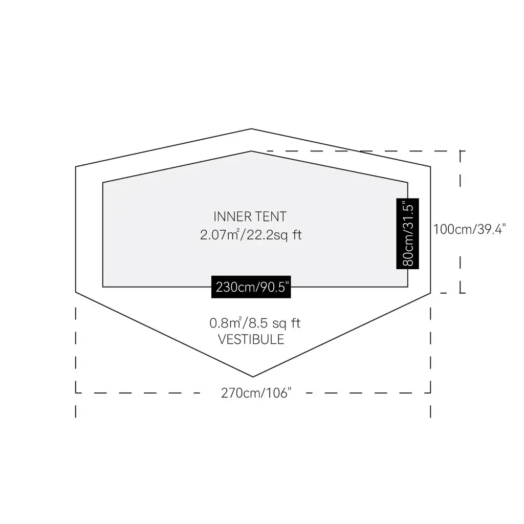 The tent is spacious enough for 1 person, even if you're taller (inner dimensions 230 x 100 cm, height 125 cm). But if you need more space, like for a furry buddy or to store all your gear inside the tent, check out the tent Lanshan for 2 people.