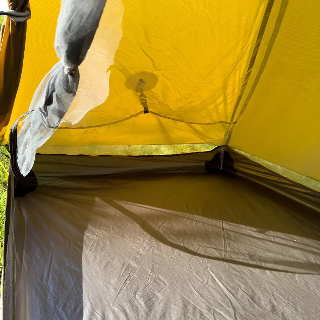 The latest version of the tent for 2026 brings several improvements. The classic zipper with a storm flap has been replaced with a waterproof zipper, plastic hooks have been swapped for metal ones, and a stronger material, 20D UHMWPE Grid Nylon, has been used in the most stressed area by the vent. Thanks to these changes, the tent is more resistant to bad weather and wear and tear.
