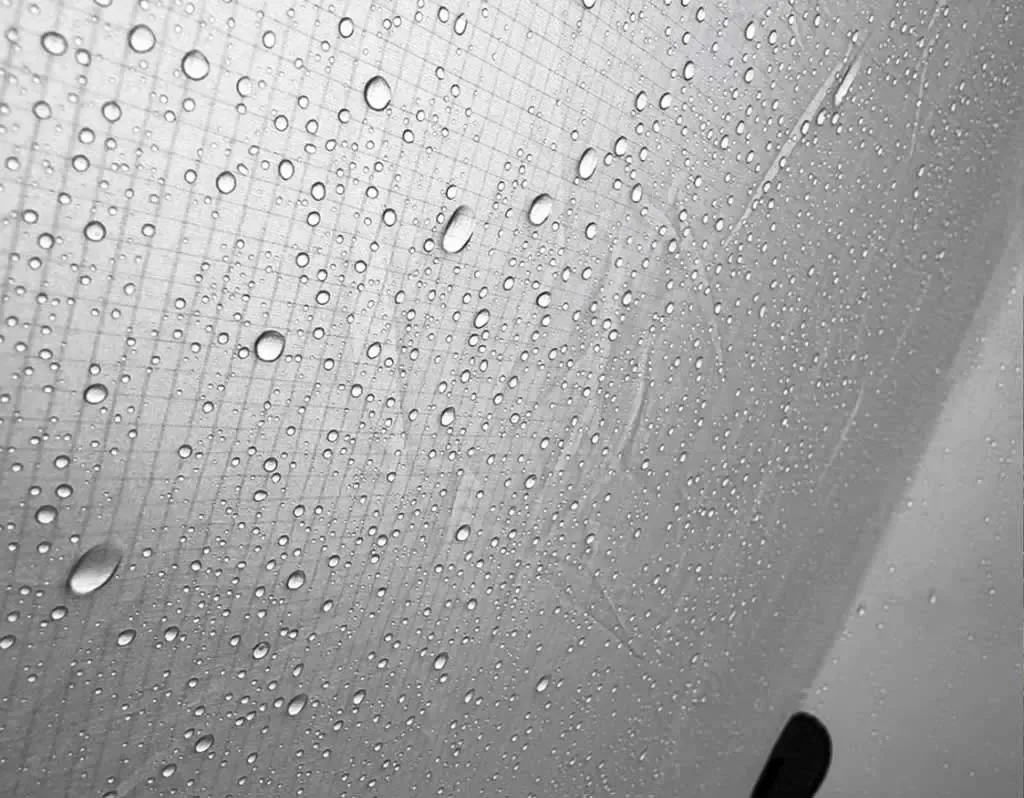 The rainfly of the tent is constructed from 20D SilPoly material (weight 38 g/m², water column 2 000 mm). Polyester, unlike nylon, doesn't absorb water as much, so the tent doesn't sag as much in the rain. It's a fabric with a double-sided silicone coating that enhances fiber strength, reduces surface absorbency, and improves resistance to UV rays. Because of this, the seams aren't taped like with regular tents, since they don't stick to the siliconeized surface. You'll need to coat the seams with silicone adhesive/coating from the outside before use. You can use, for example, Gear Aid Seam Grip +Sil 28g.