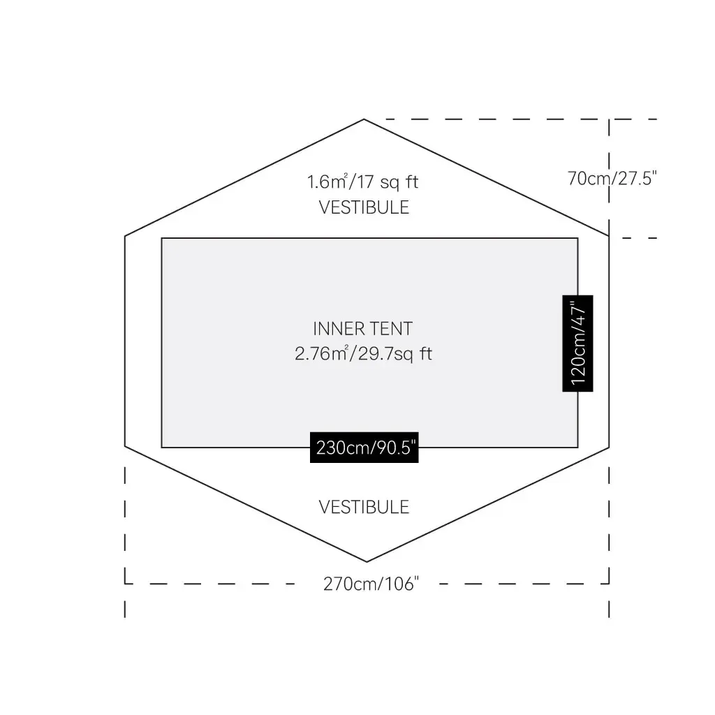 Because the parts at the head and feet are most exposed to condensation, there are now solid nylon panels placed at both ends of the tent, which help reduce condensation transfer to your sleeping bag. You can optionally cut off both panels, saving you about 20 grams.
