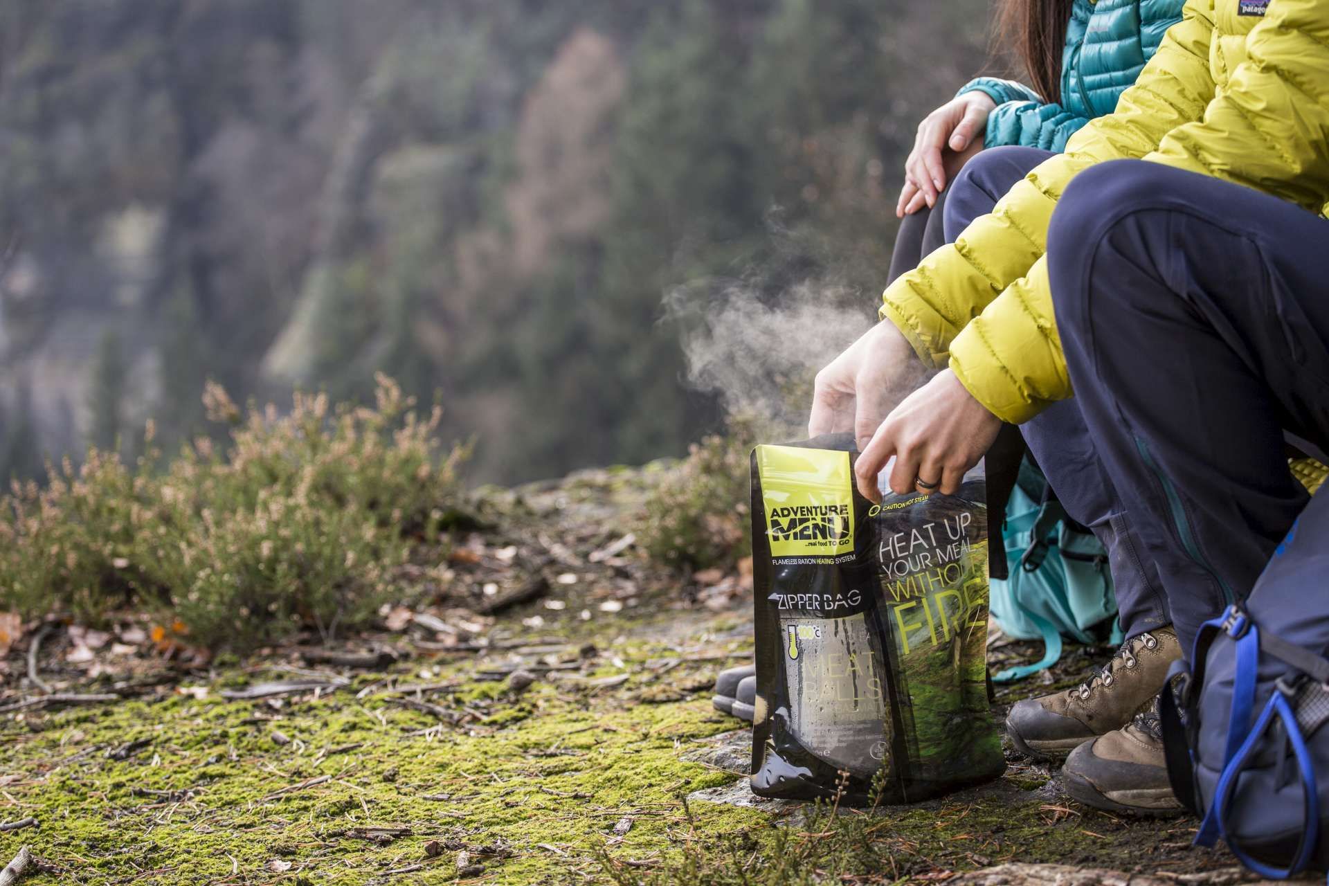 Self-heating pad, also known as a flameless-heater, is a special bag that heats vacuum-packed Adventure Menu meals without the need for a stove or cookware in just 20 minutes. In the meantime, you can relax, prepare your sleeping area, or enjoy the view.