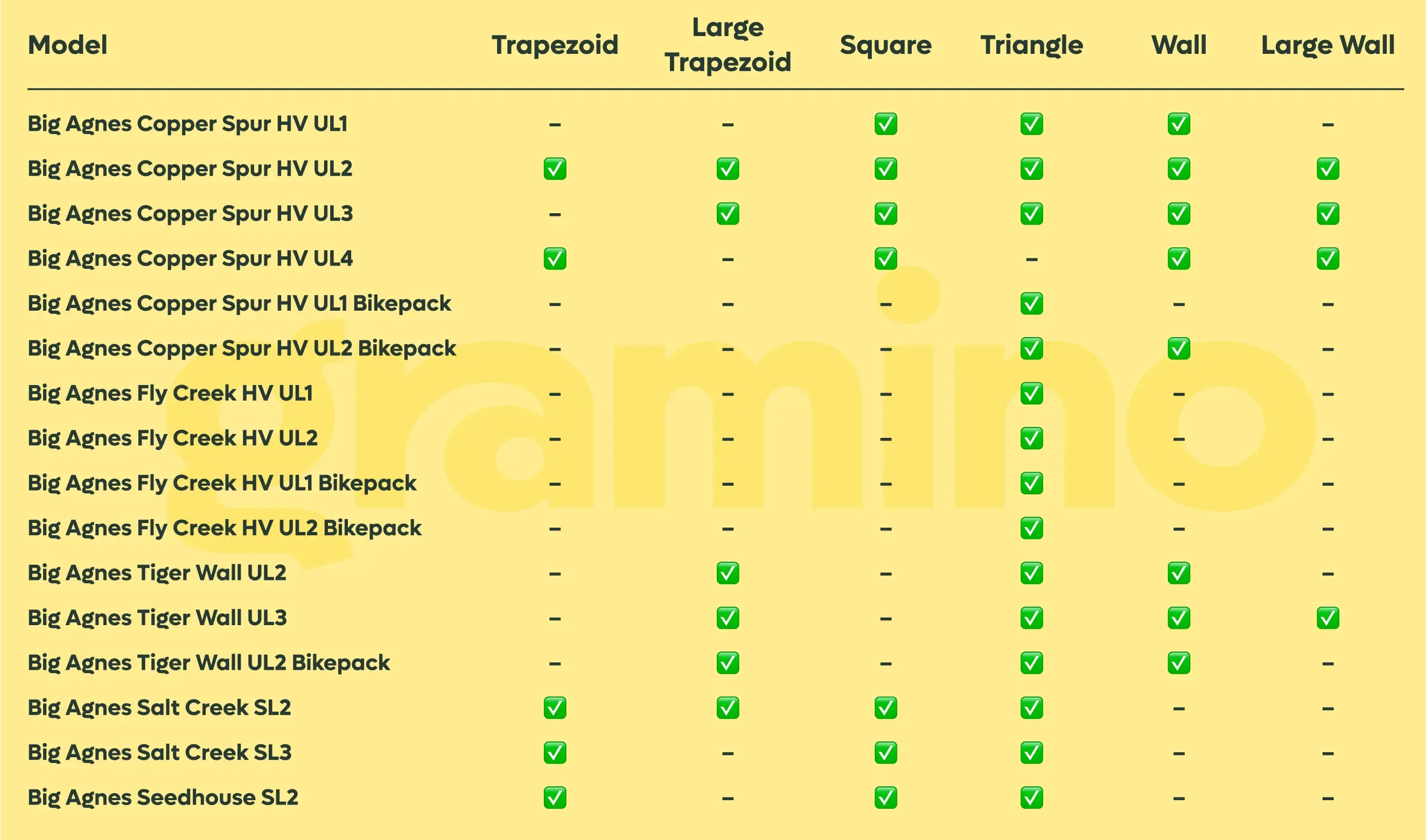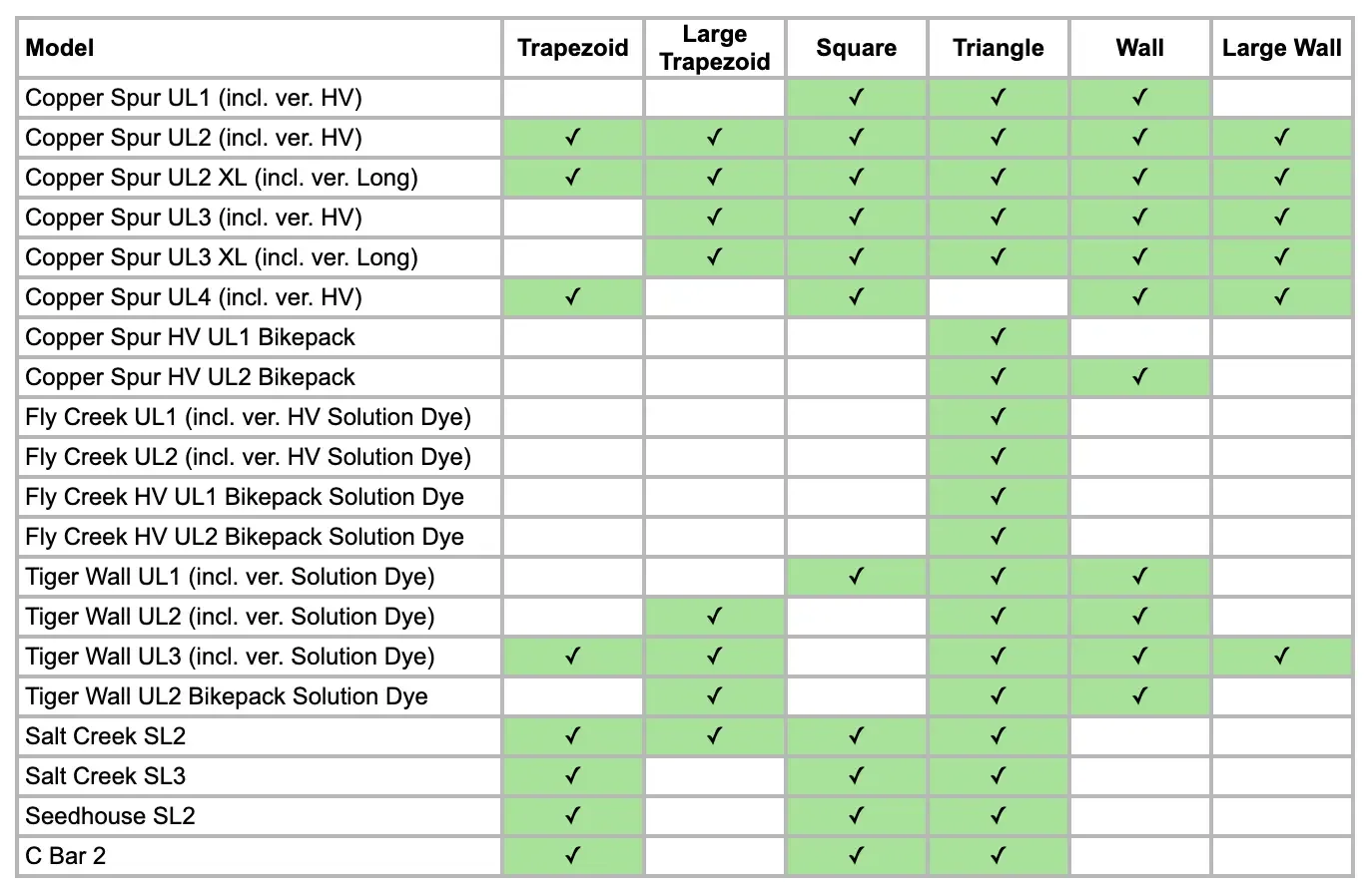 Please check the compatibility of the organizer with your tent in the table.