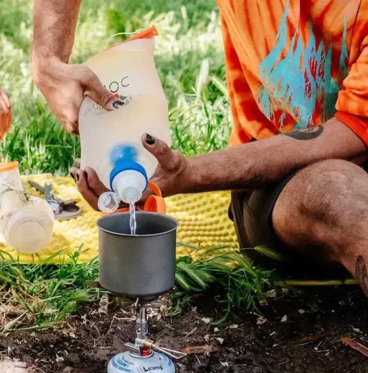 The wide-mouth closure (slider) has a locking mechanism to prevent the bag from accidentally opening and spilling water. The slider also comes with an elastic band, so you don't have to worry about losing it or it falling into the river and floating away. When you're not using the bottle, you can simply roll it up and tuck it into the side pocket of your backpack.
