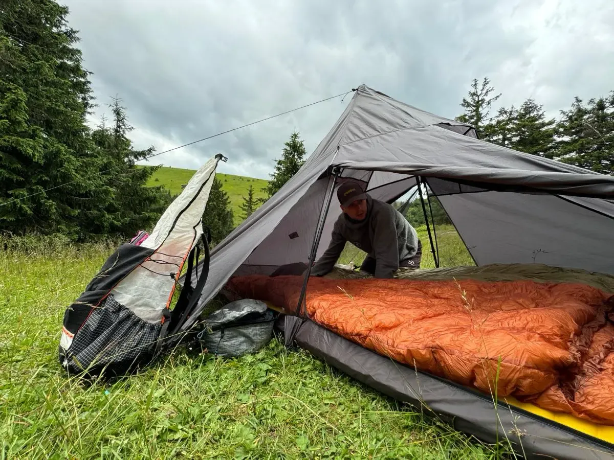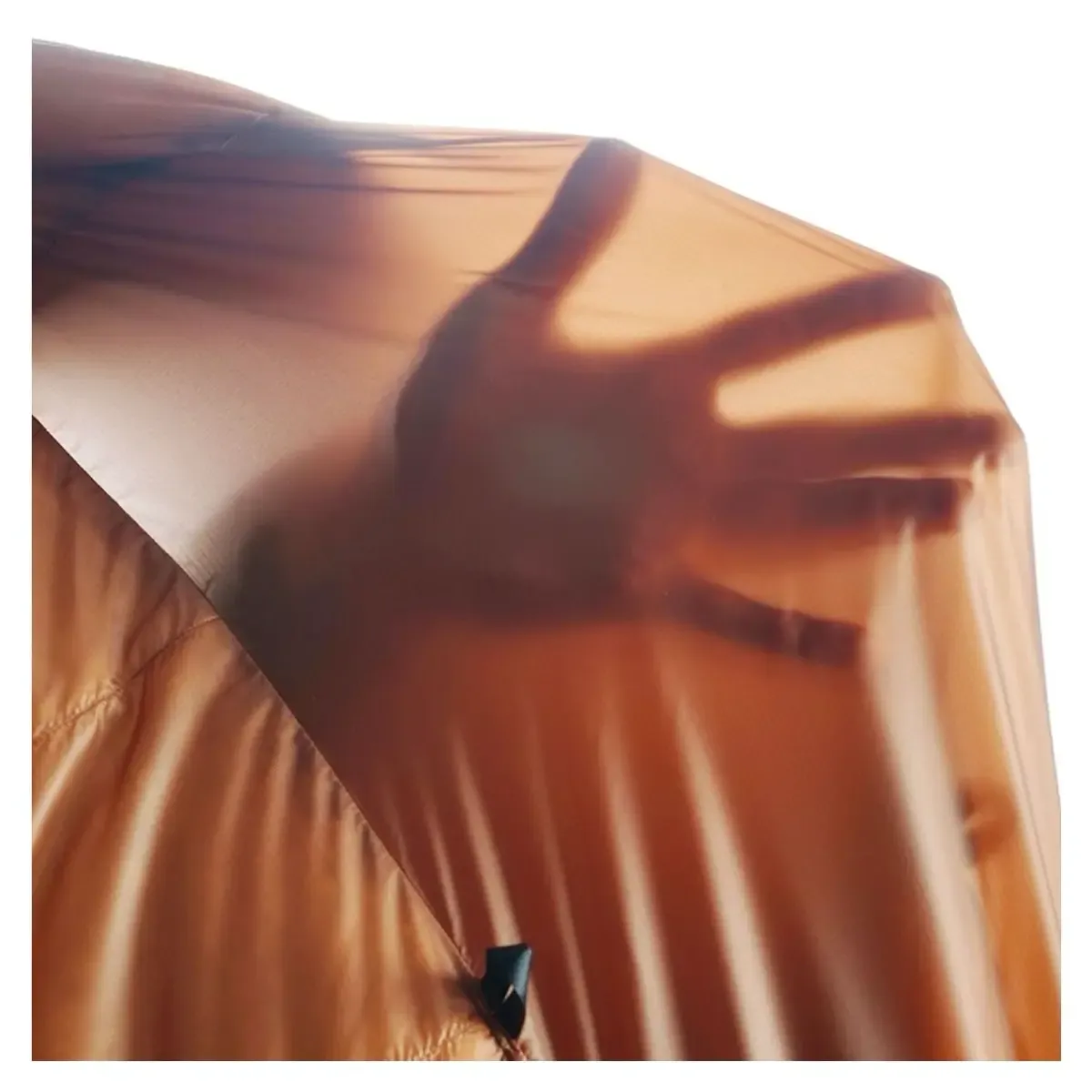 The manufacturer chose the proven Toray® Airtastic 19 g/m² (7D ripstop nylon) fabric, which perfectly combines low weight, durability, breathability, and packability. On the outer side, it’s treated with a durable water-repellent (DWR) finish that reliably withstands light condensation of atmospheric moisture and a few drops of water.