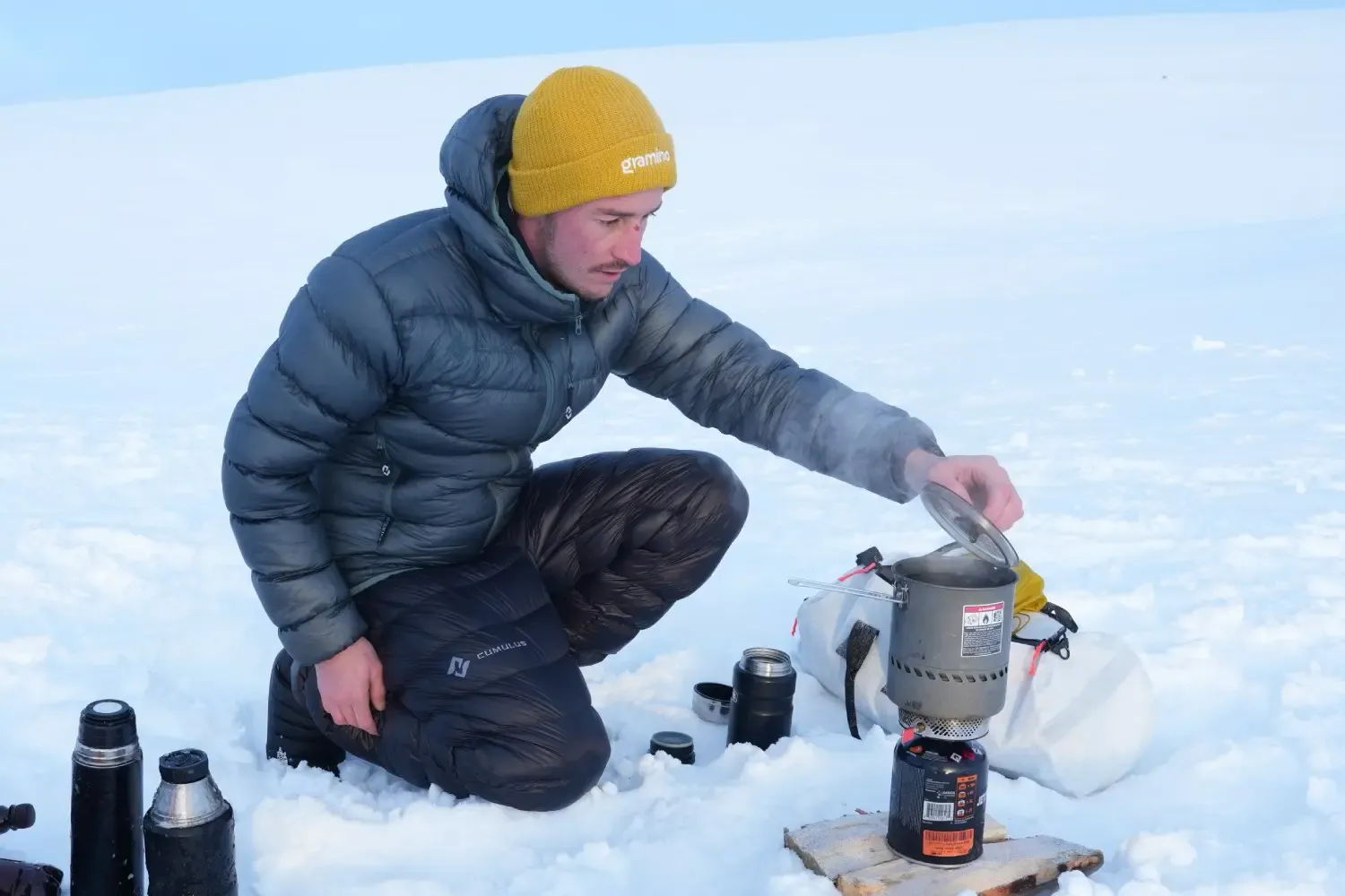 Míša and David tested these insulated pants on their last polar expedition on Kungsleden, and they both swear by them. They were never cold at night in the tent or in the evening at the campsite, and they're planning to take them on all future winter expeditions. Combined with down jacket and insulated booties, they'll give you maximum thermal comfort even in the coldest conditions.