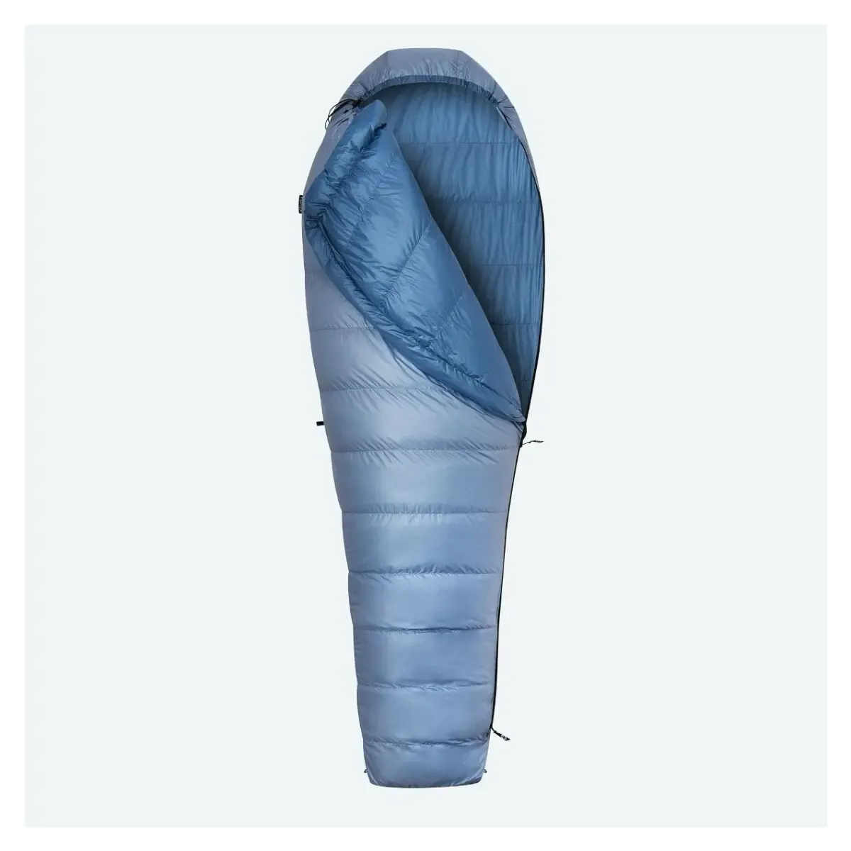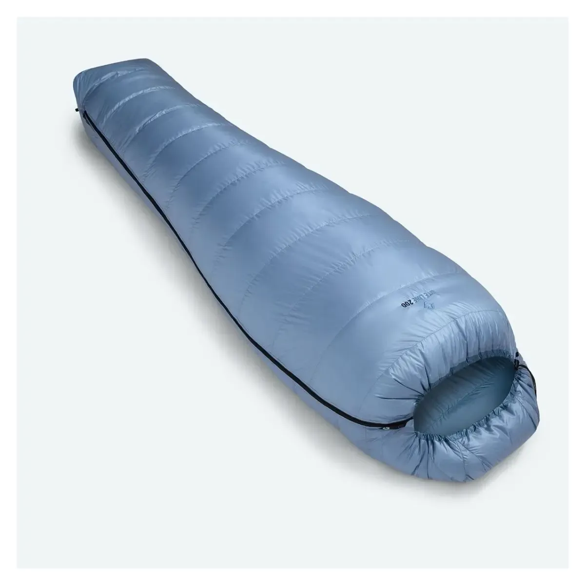The construction of the sleeping bag uses Pertex Quantum fabric 29 g/m², which perfectly combines low weight, durability, breathability, and packability. The outer fabric is treated with a durable water-repellant (DWR) coating that retains light condensation or a few drops of water.