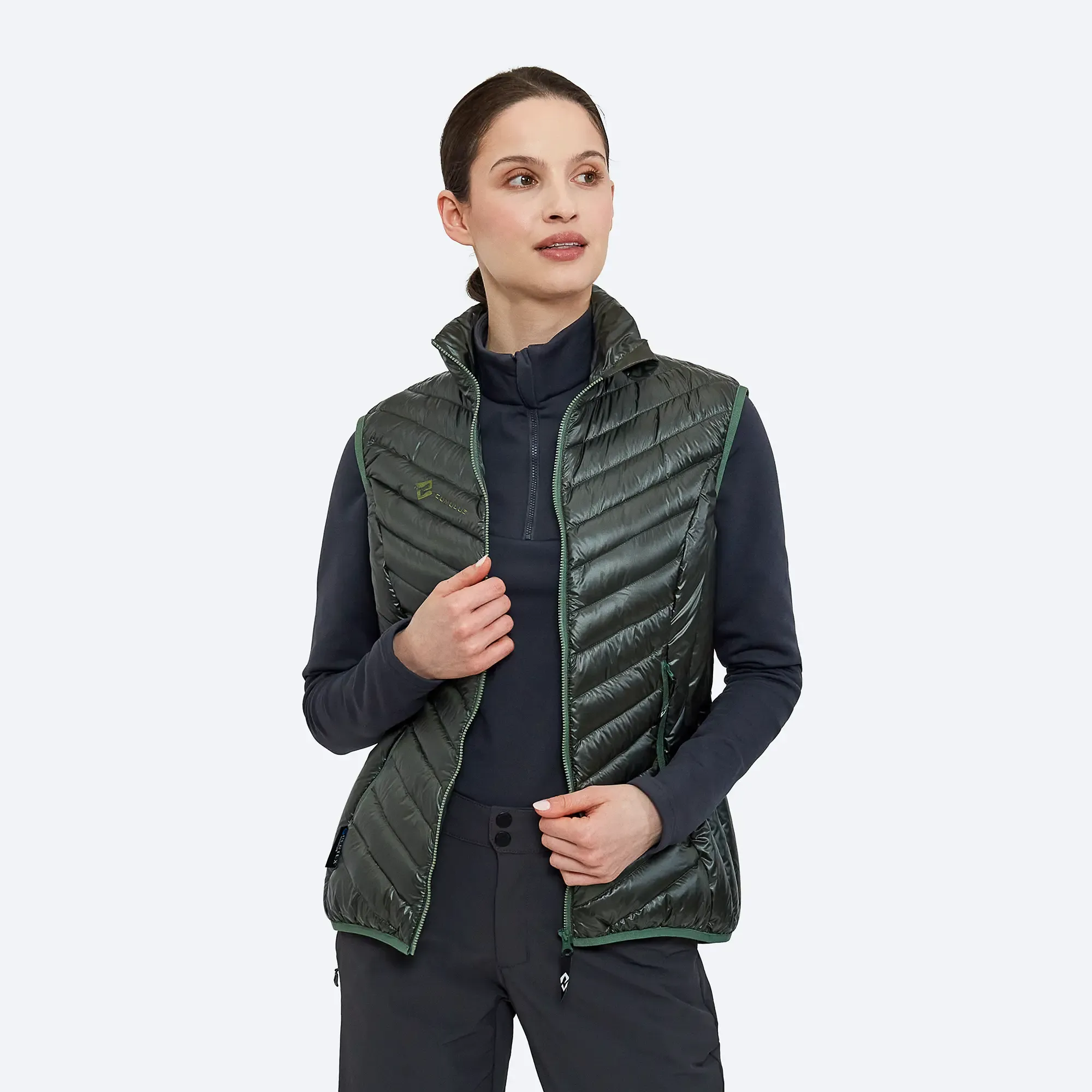 Cumulus Minilite Lady is a lightweight and packable women's down vest that can serve as an additional insulation layer and will keep you warm in any circumstance. It is breathable and comfortable. Two zippered pockets and a fitted collar allow for comfortable wearing on any occasion.
