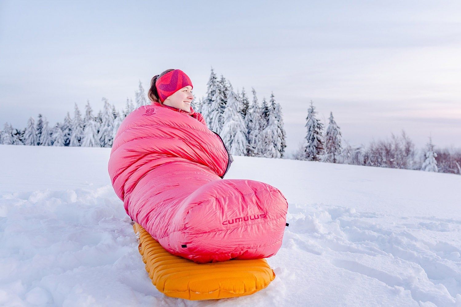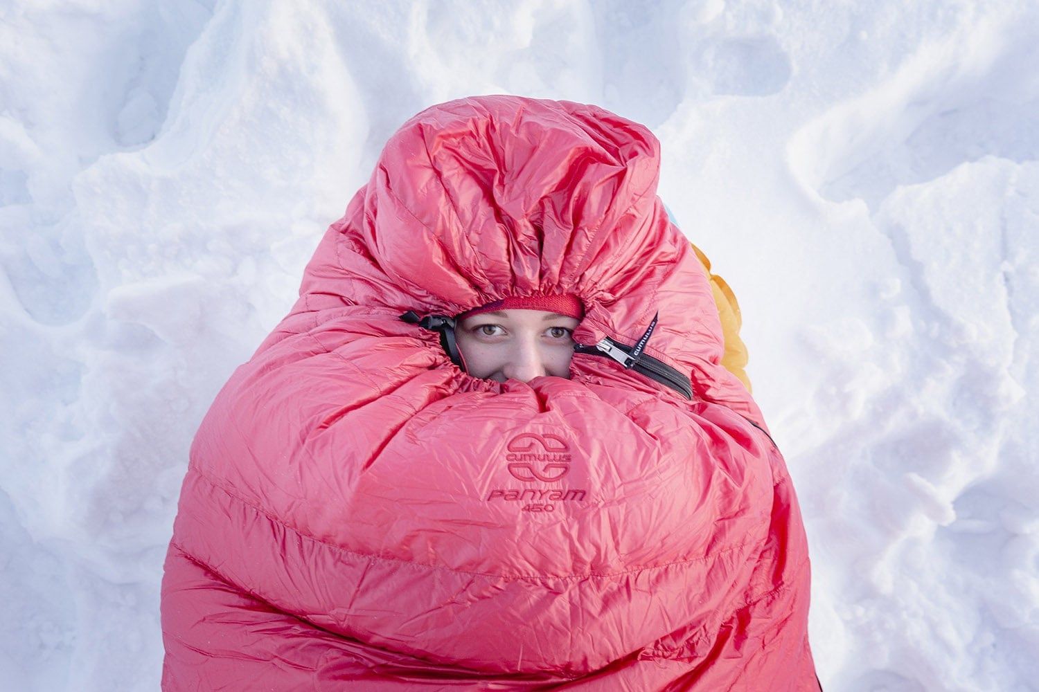 The sleeping bag has a 175 cm long YKK zipper with wider zip slider to prevent it from snagging on the fabric when zipping up. At the foot, you'll find a second zip slider, which is ideal for ventilation. Behind the zipper on the inside is a down-filled insulating tube that minimizes heat loss through the zipper itself. Two Cumulus sleeping bags with opposing zippers (left + right) can be connected together.