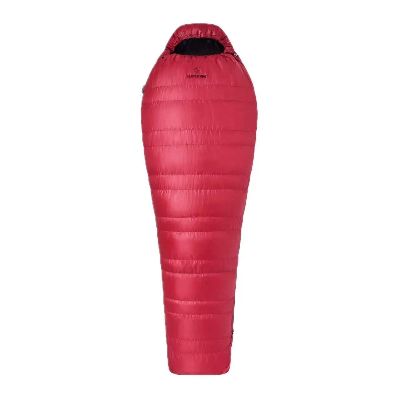 The sleeping bag uses trapezoid chambers that prevent the formation of "cold spots" at the seams of two chambers. Compared to the Lite Line series, the Panyam is slightly spacious. The width of the sleeping bag at the shoulders is 80 cm and at the hips is 55 cm. According to our experience, the basic size M is suitable for persons up to 190 cm tall. The construction of the foot box named Shark-fin prevents down compression, is comfortable, and provides better thermal performance than conventional designs.
