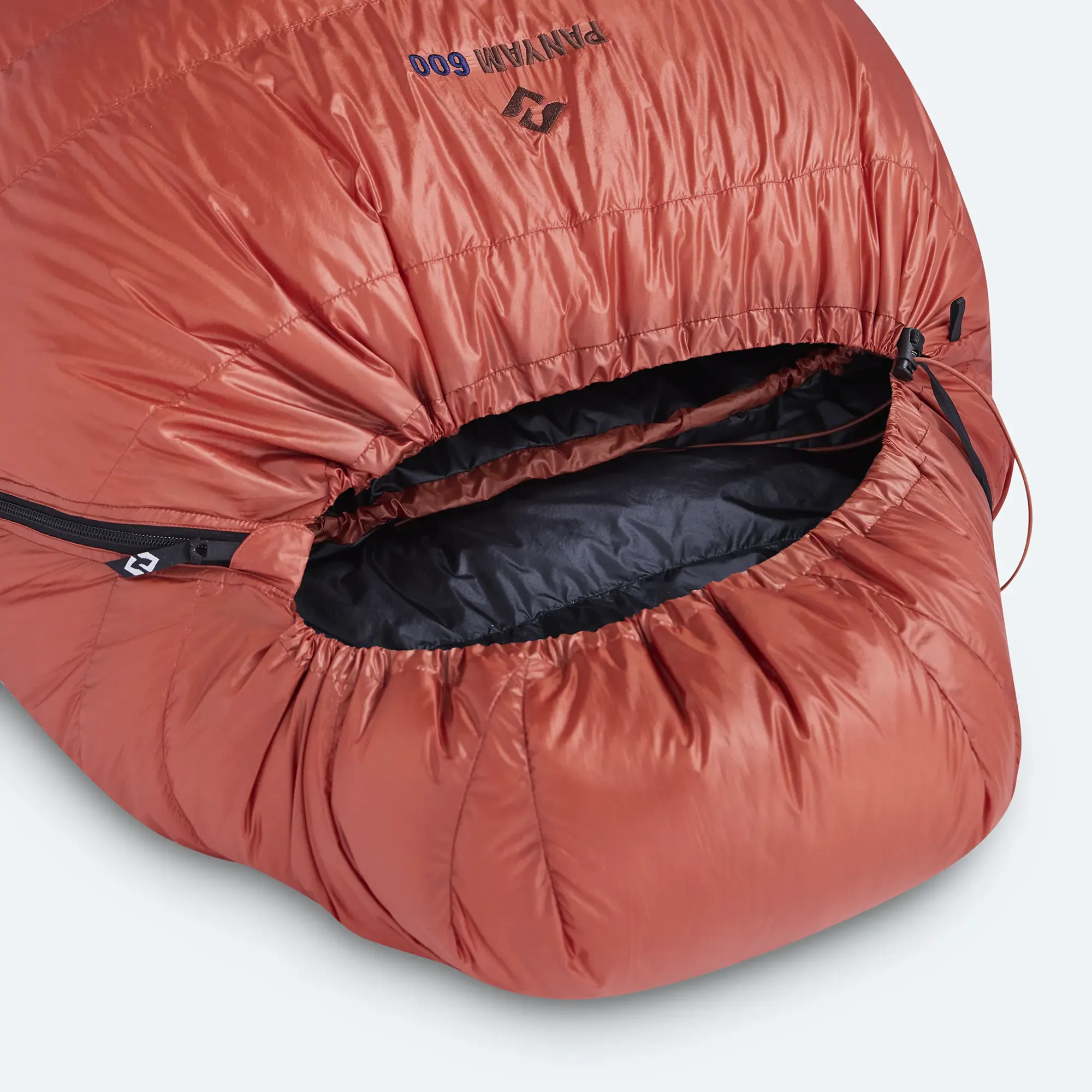 The sleeping bag has a 175 cm long YKK zipper with an extended slider to prevent it from snagging on the fabric when zipped. At the foot section, there is a second slider that is ideal for ventilation. Behind the zipper on the inside, there is a down-filled insulating tube, which minimizes heat loss through the zipper itself. Two Cumulus sleeping bags with opposite zippers (left + right) can be connected together.