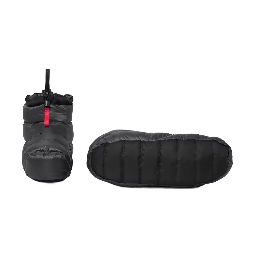 Well-designed down booties for those who have perpetually cold feet. Thanks to the careful selection of the best materials and very high-quality down, the booties are light as a feather and can be packed into a small sack the size of an orange.