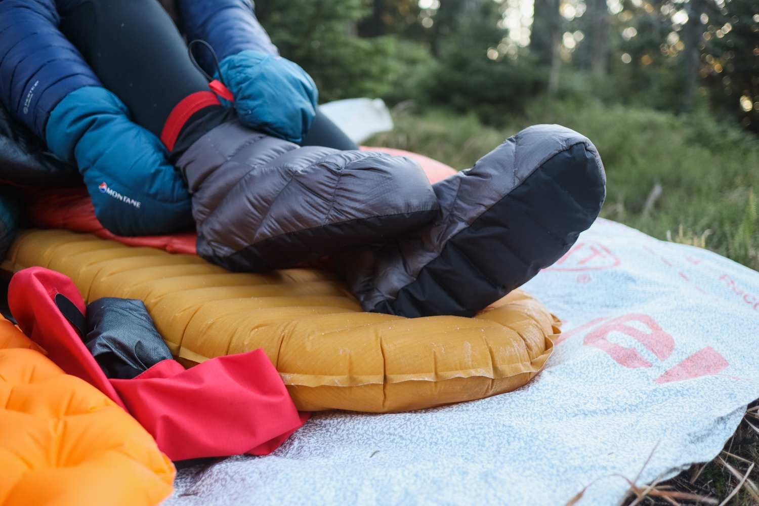 The slippers are filled with 40 grams of goose down with a fill power of 850 cuin and a hydrophobic treatment (PFC-free), making them more resistant to moisture.