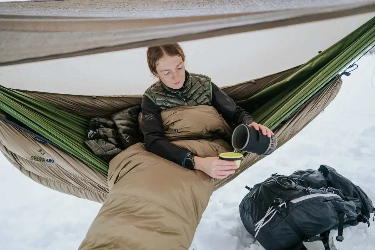 The manufacturer specifies a comfort temperature of 2 °C and a limit temperature of -4 °C (when used in a hammock with the underquilt Selva 250 or Selva 300).