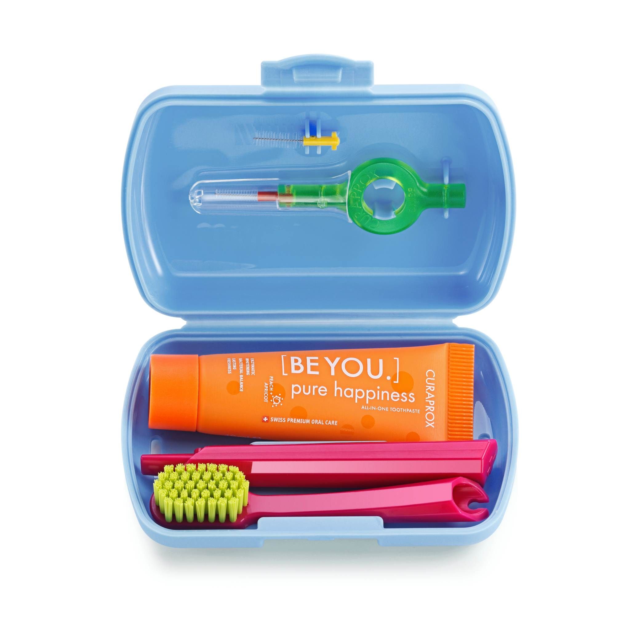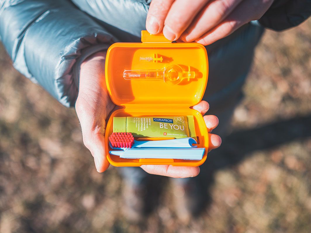 The Travel Set by the Swiss brand Curaprox is an ultralight and compact kit for dental hygiene. It includes everything needed for daily care of teeth and gums. Thanks to its practical packaging, it fits even into smaller pockets. The total weight of the set is 52 grams.