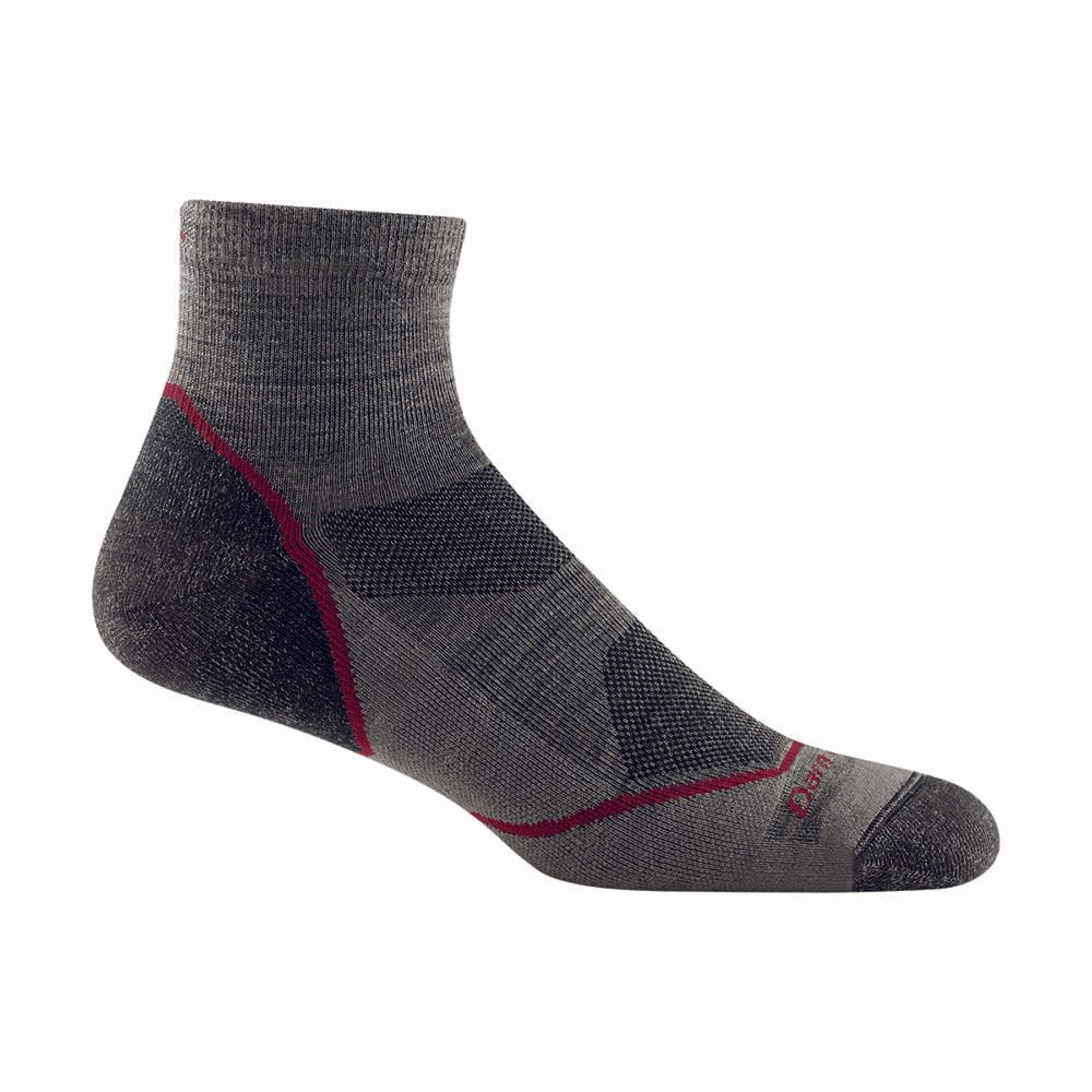 Darn Tough Men's Light Hiker 1/4 Lightweight merino socks are the ideal choice for hikes from spring to autumn. The cushioning on the foot absorbs shocks while walking. The ankle-length of the socks pairs perfectly with trail running shoes, for which they are made.