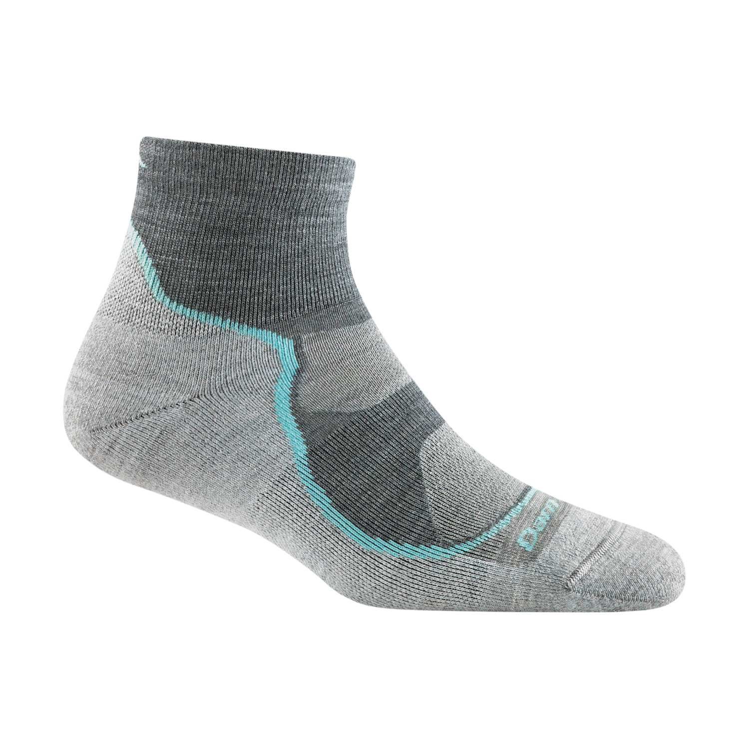 Darn Tough Women's Light Hiker 1/4 Lightweight merino socks are the ideal choice for hikes from spring to autumn. The cushioning on the foot absorbs shocks while walking. The ankle-length of the socks pairs perfectly with trail running shoes, for which they are made.