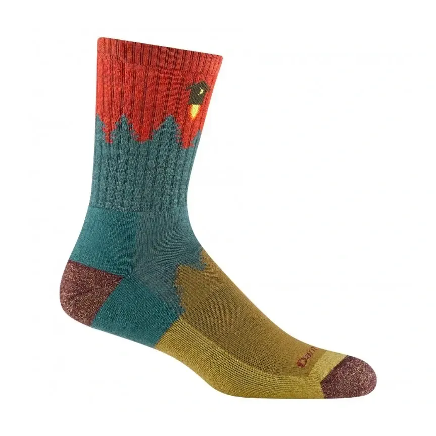 Darn Tough Men's Number 2 Micro Crew Midweight merino socks have set a new standard for what perfect hiking socks should be – versatility, durability, comfort, and mid-height. This model also features a design of a row of trees and flying huts. Hikers wear them on long-distance trails, such as the AT or the PCT. Suitable for trail running shoes as well as hiking boots. As with all Darn Tough models, you can also rely on a lifetime warranty.