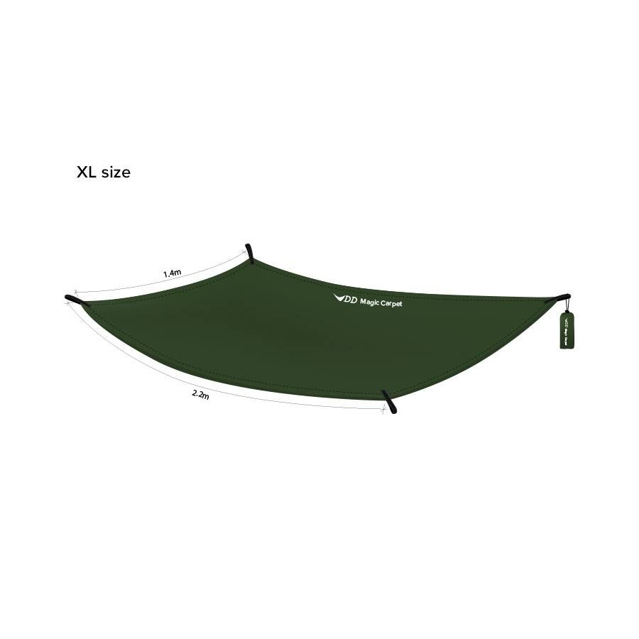 A waterproof tarp with four anchor points that can be used as a footprint or an emergency shelter. It’s spacious enough to accommodate two people. The DD Hammocks Magic Carpet is made from ripstop nylon with a PU coating and a 3000 mm water column.