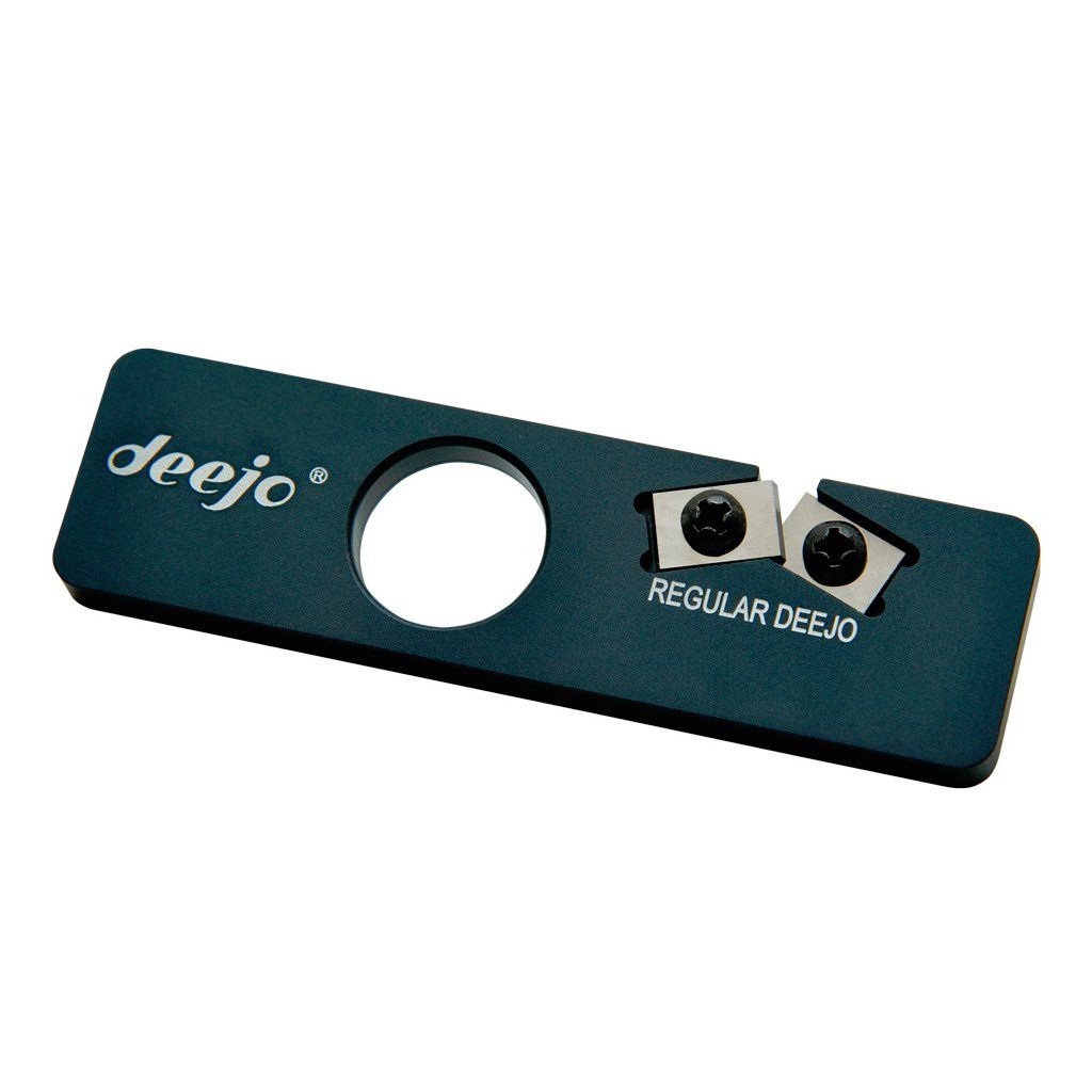 Simply run the blade through the sharpening surfaces several times with light pressure. The sharpener is suitable for regular maintenance of Deejo knives with classic, non-serrated blades, but it is not intended for Naked models with single-sided edges (chisel grind).