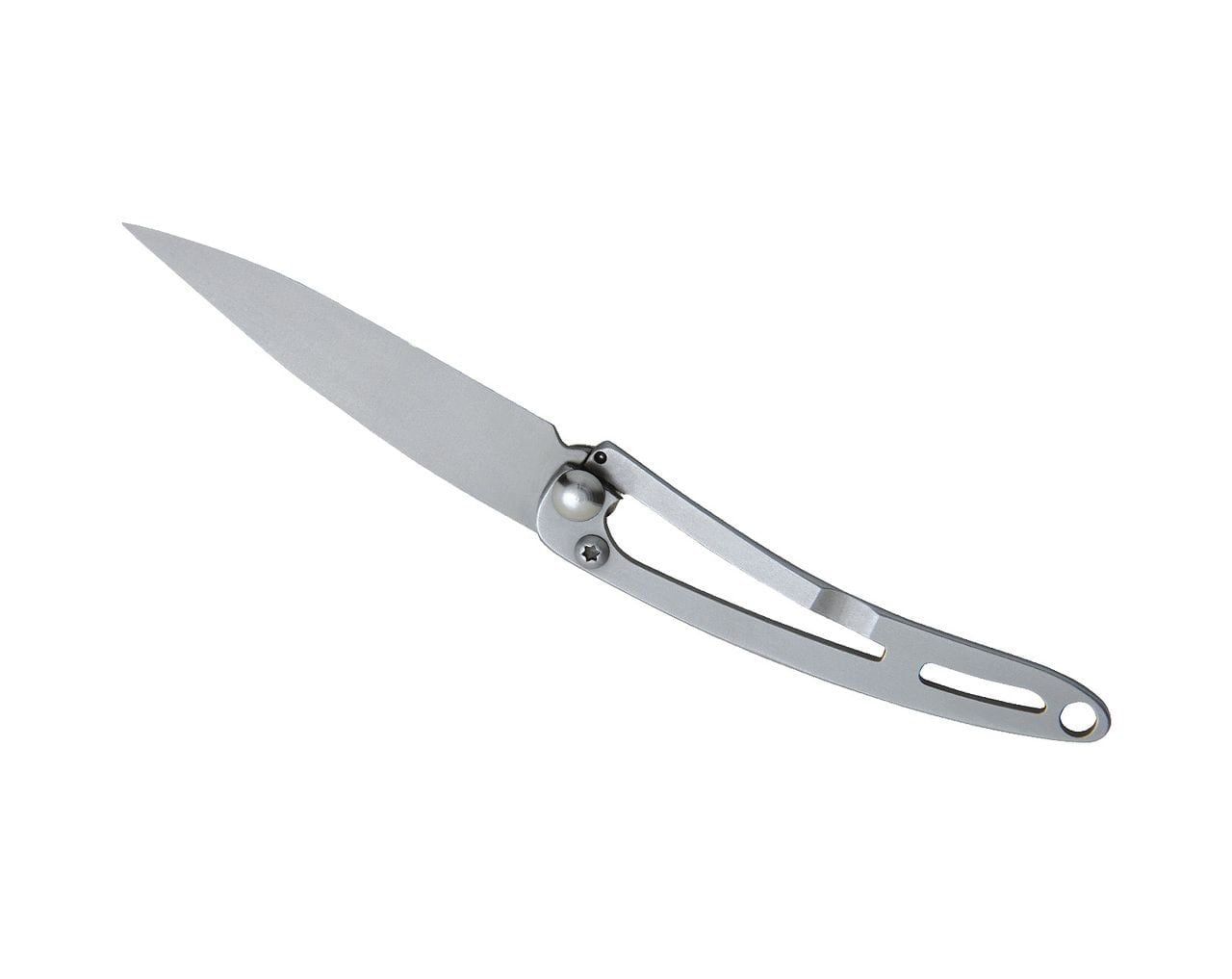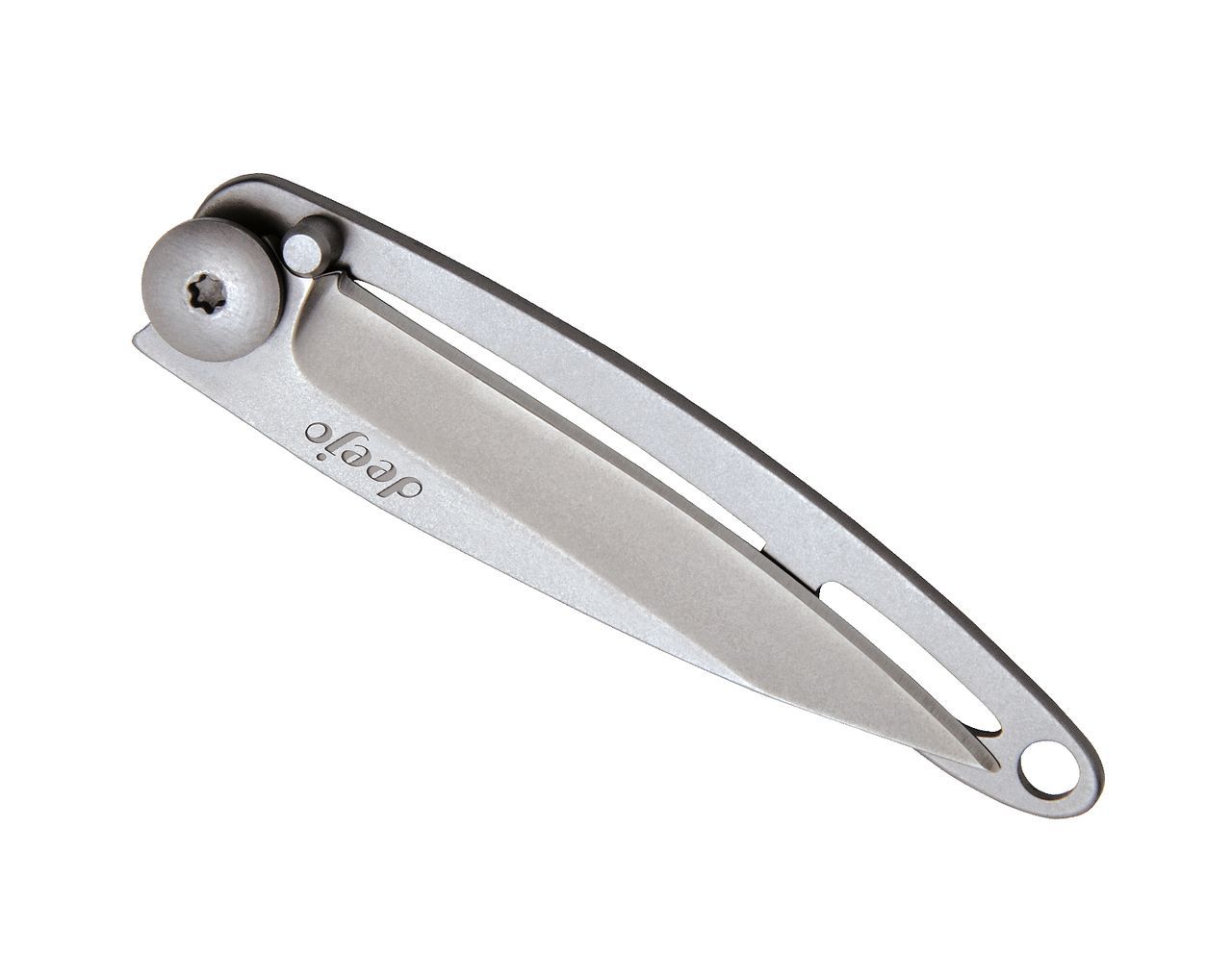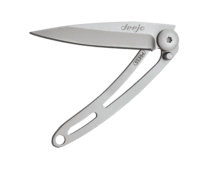 Ultralight and minimalist knives from the French brand Deejo are perfect for traveling, trekking, and hiking trips. They come in three sizes (15 g, 27 g, 37 g) and various designs. The Naked 15g knife is the smallest version, consisting solely of a blade, handle, and safety locking mechanism.