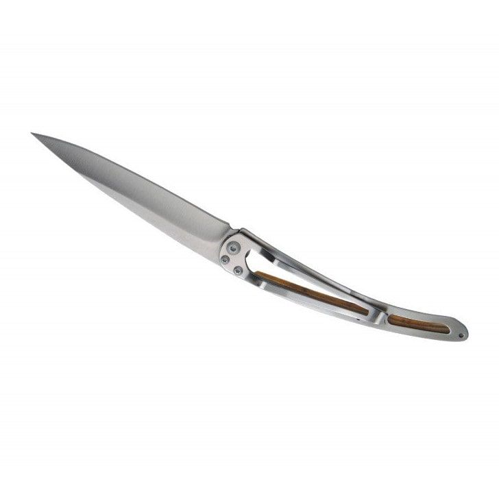 Ultralight and minimalist knives from the French brand Deejo are perfect for traveling, trekking, and hiking trips. They come in three sizes (15 g, 27 g, 37 g) and various designs.