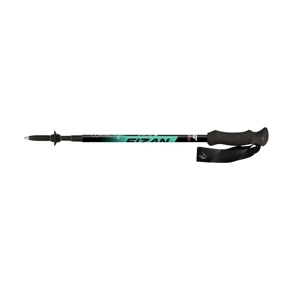Lightweight four-section aluminum trekking poles. The Compact 4 trekking poles are a more packable but slightly heavier alternative to the Fizan Compact. The folded length is 51 cm, and a single pole weighs 176 grams. The listed price is for a pair.