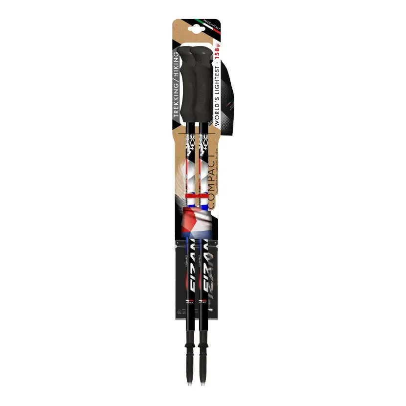 Legendary 3-section aluminum trekking poles. Super lightweight, durable, and affordable. We've tackled quite a few long-distance trails with them, and they've always had our back. The weight of one pole is just 163 grams. The price listed is for a pair. The Fizan Compact MS Czech Edition comes in the colors of the Czech flag and features an image of the silver double-tailed lion. The package also includes a Fizan neck gaiter.