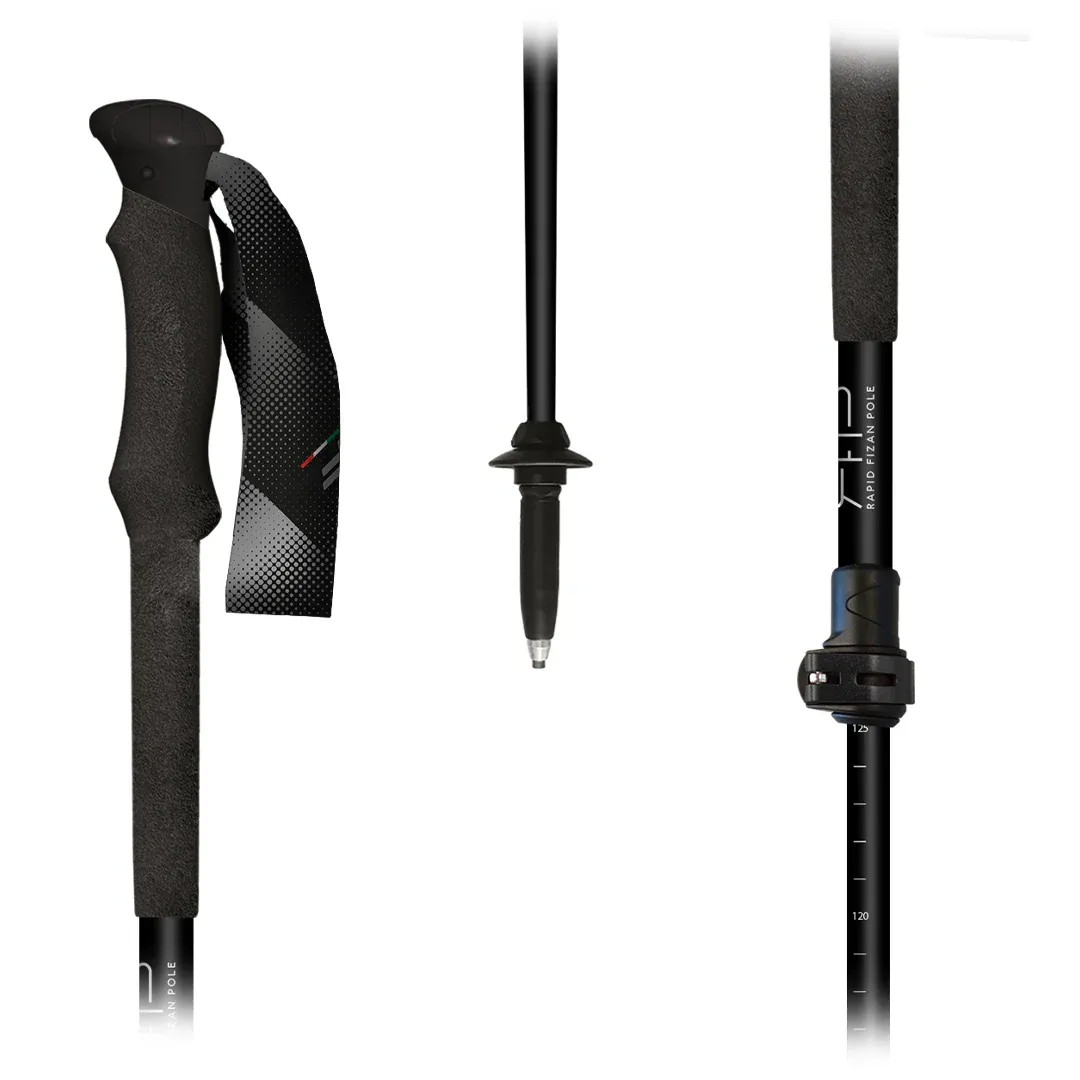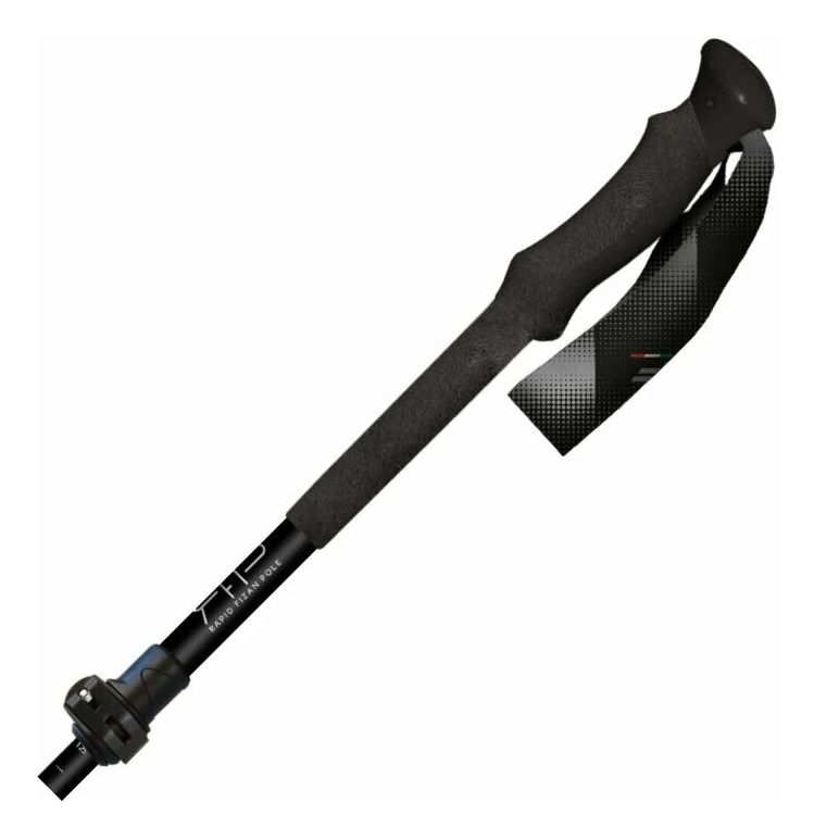 The Rapid Fizan Poles (RFP) are foldable aluminum trekking poles from the Italian brand Fizan, featuring an innovative ultra-fast locking system (One Touch Locking System). It is available in two versions, with the RFP Touring version featuring an extended handle made from comfortable EVA foam. The weight of a single pole is 260 grams.