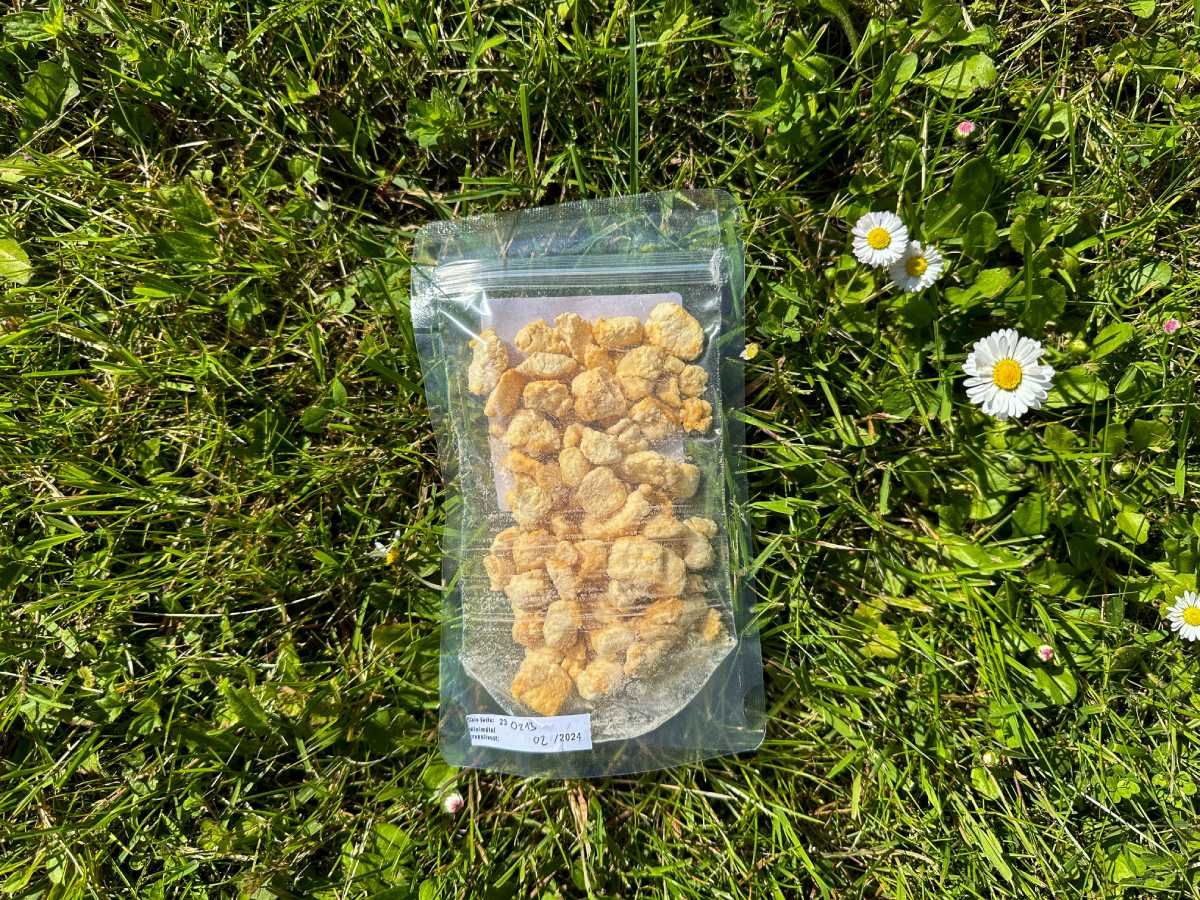 Freeze-dried Olomouc curd cheese will satisfy a small hunger, fatigue, or a moment of craving. It offers a proper portion of protein, but above all, it is a fabulous gourmet experience. This ultralight snack was made by removing water through freeze-drying – lyophilization.