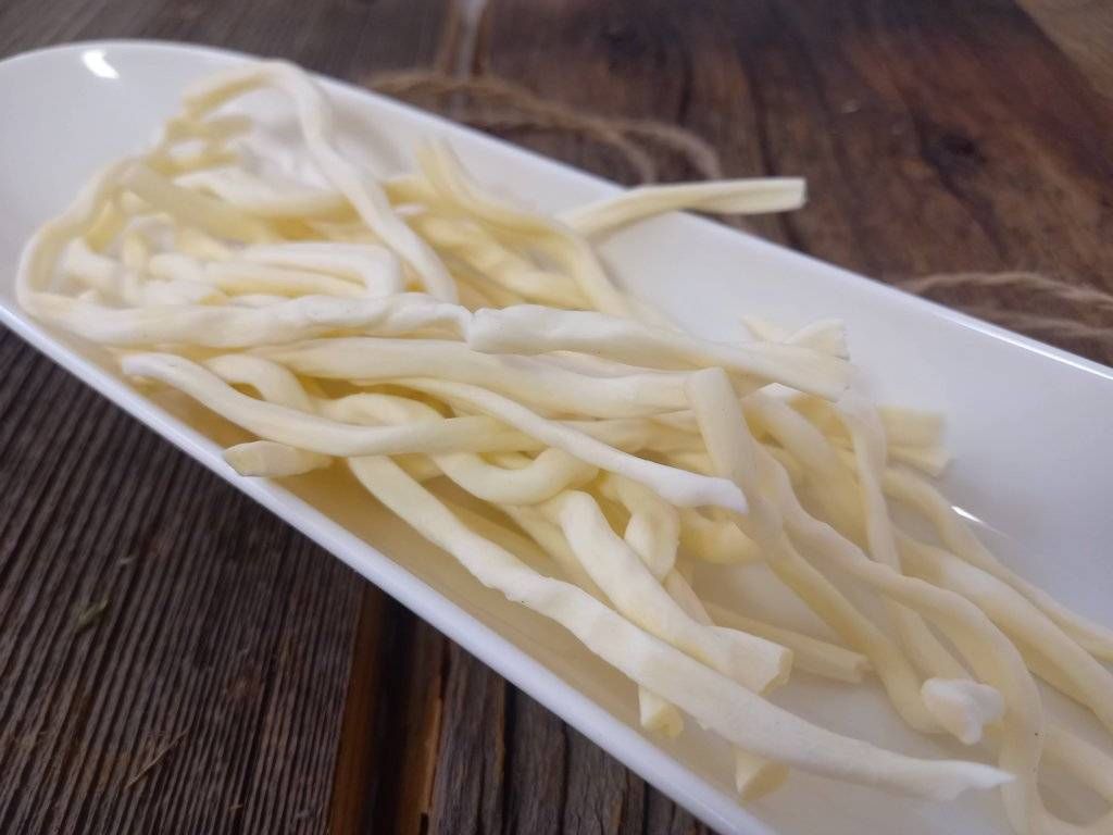 Freeze-dried string cheese will satisfy a small hunger, fatigue, or a moment of craving. It offers a proper portion of protein, but above all, it is a fabulous gourmet experience. This ultralight snack was made by removing water through freeze-drying – lyophilization (type of dehydration process).