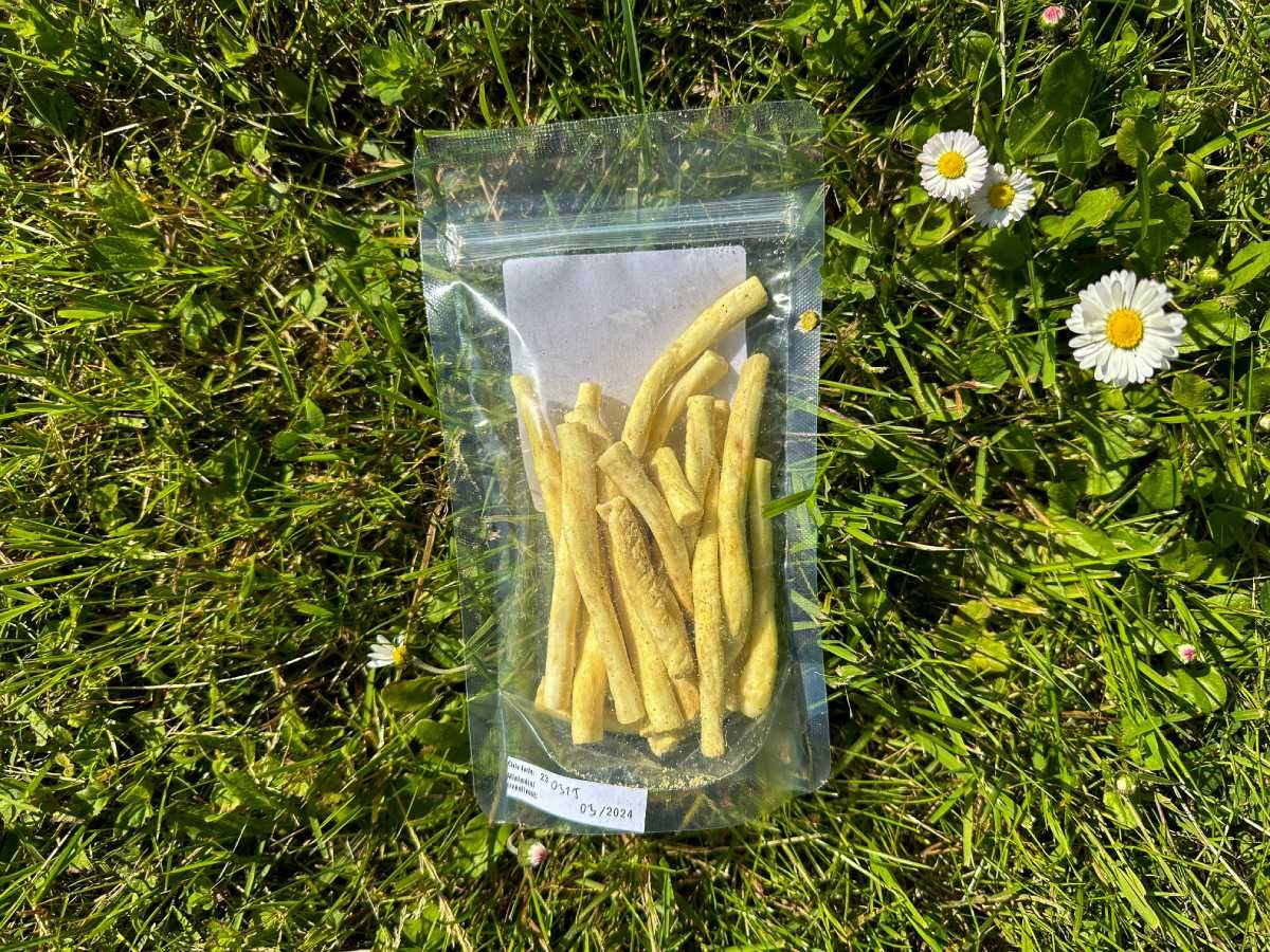 Freeze-dried string cheese ('korbáčiky' in Czech or Slovak) with Greek herb flavor are an excellent ultralight snack with over 50% protein content. The package weighs 50 g and will provide you with the necessary energy during mountain hikes or a demanding workday. Everything is, of course, 100% natural, without unnecessary unhealthy additives.