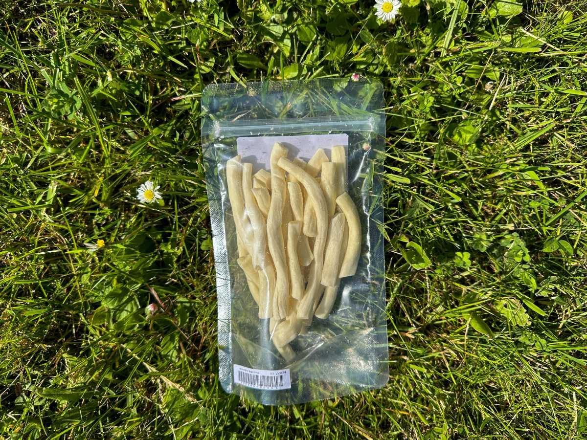 Freeze-dried string cheese ('korbáčiky' in Czech or Slovak) are an excellent ultralight snack with over 50% protein content. The package weighs 50 g and will provide you with the necessary energy during mountain hikes or a demanding workday. Everything is, of course, 100% natural, without unnecessary unhealthy additives.