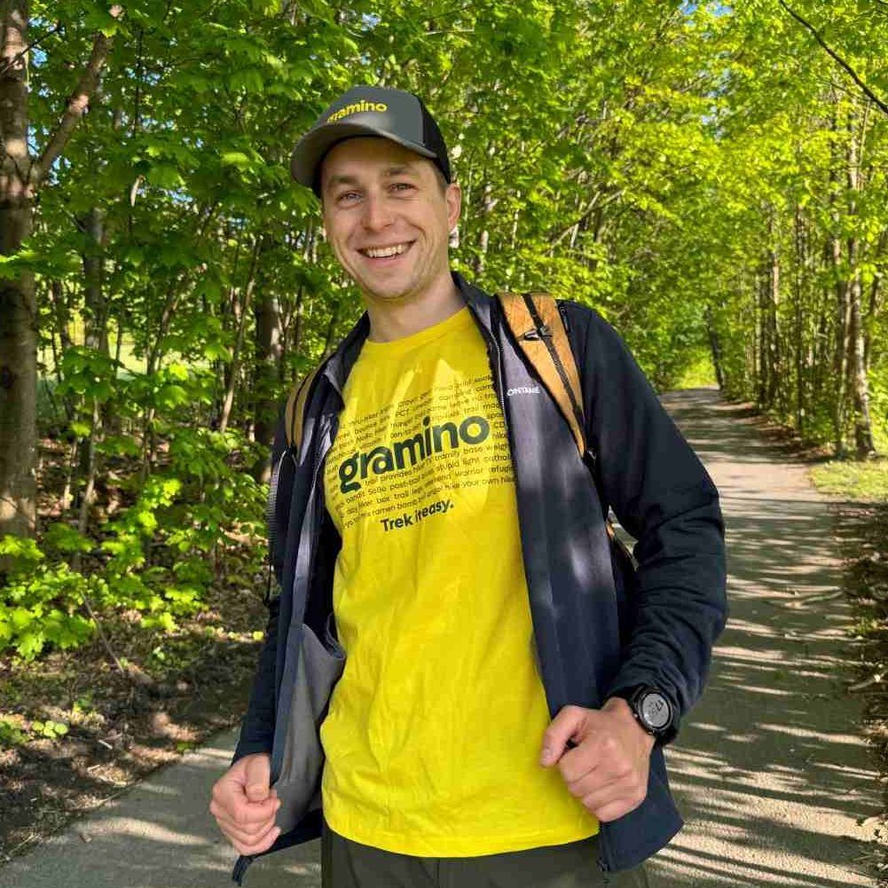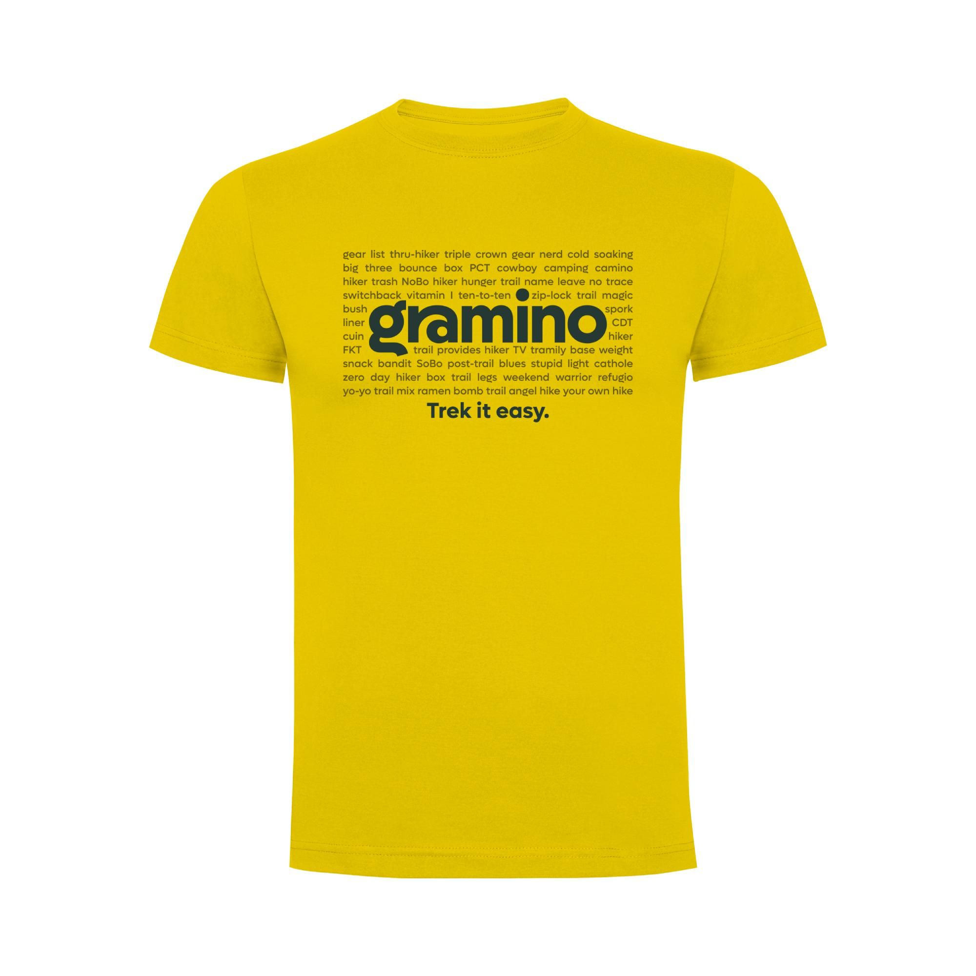 The Gramino Trail Slang T-shirt, designed in-house, is inspired by terms and slang expressions commonly heard in the context of thru-hiking and ultralight gear. On the back of the neck, you’ll find the Gramino brand symbol.
