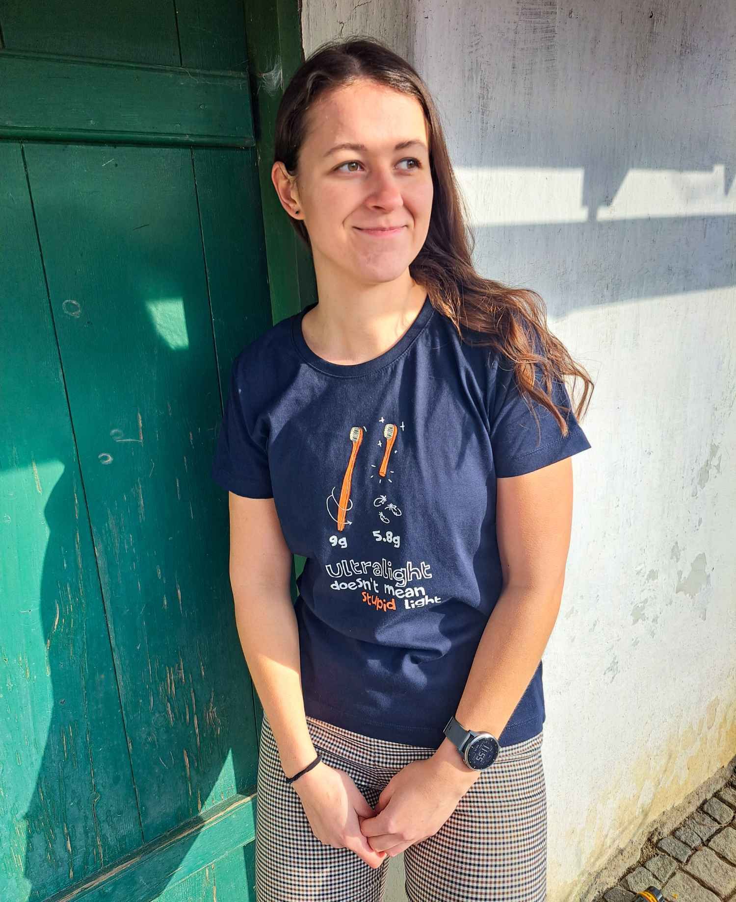 In the community of ultralight enthusiasts, we encounter extremists who break their toothbrushes in half. We believe this is already going too far. The t-shirt with the slogan "Ultralight Doesn’t Mean Stupid Light" reminds us that ultralight is not about chasing every gram but finding ways to enjoy our walks in nature a little more.
