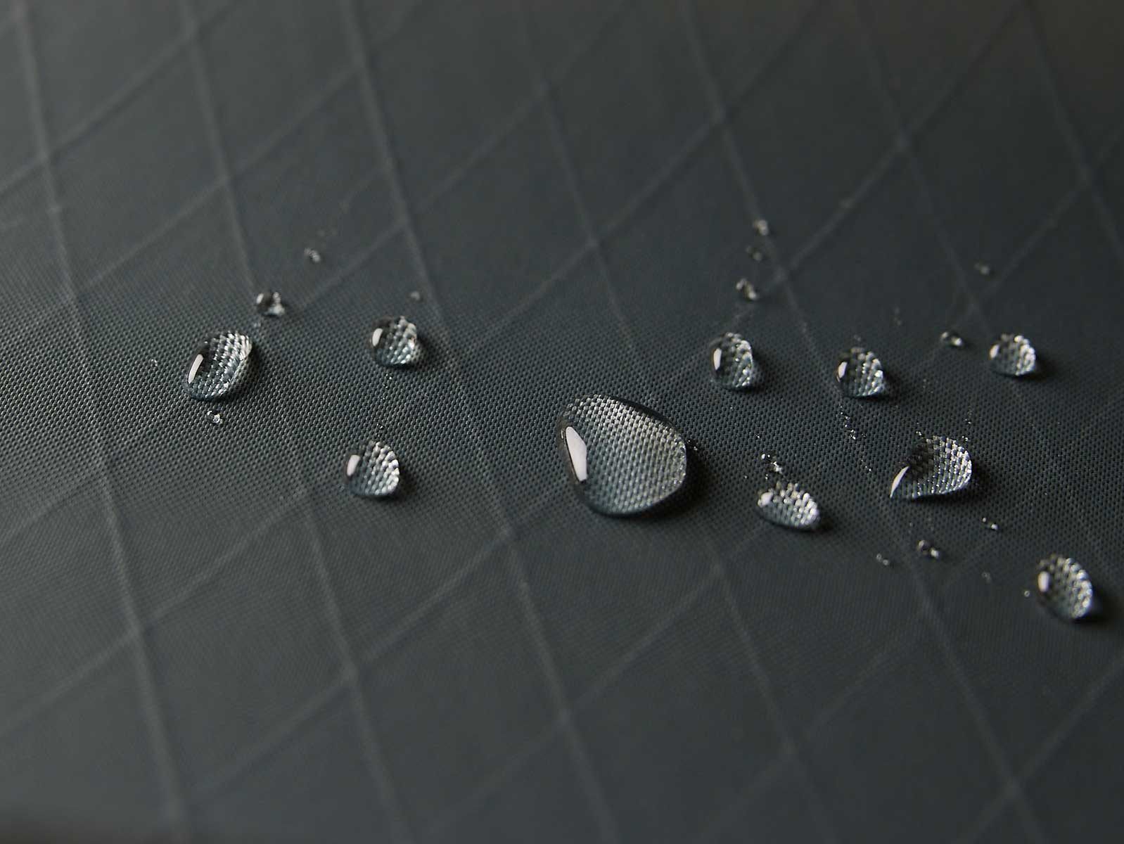 The backpack is constructed from material X-Pac® VX07S. The side pockets and the top side of the shoulder straps are made from 210D HDPE Gridstop material with DWR treatment. The stretch pockets are made from durable nylon.