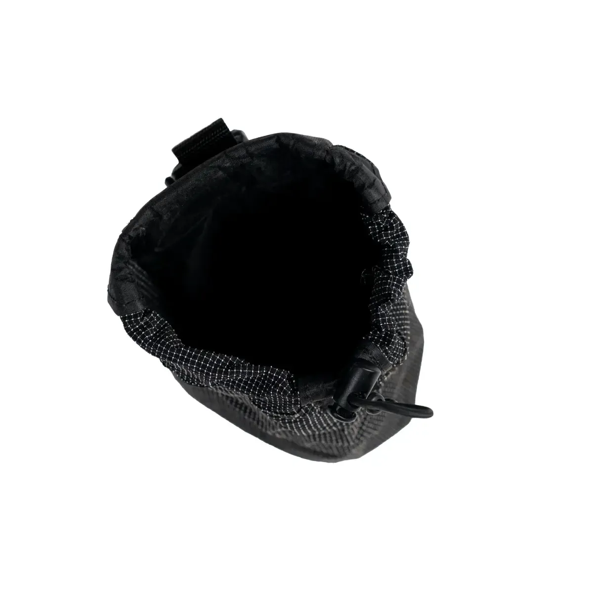 The pocket is made from Dyneema Stretch Mesh UL with an elastic drawcord and toggle closure at the top. The back panel is reinforced with Dyneema® material and features foam padding (0,3 cm thick) to enhance durability during frequent use. The pocket attaches securely to the loops on your shoulder strap using Gatekeeper buckles.