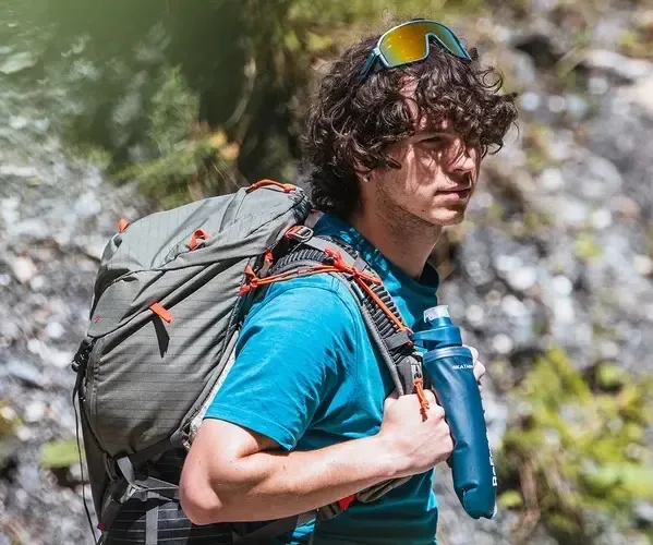 Included in the package is a soft, foldable PVC bottle (BPA-free) from Hydrapak with a capacity of 0,5 liters. It fits perfectly into the pocket on the shoulder strap of your backpack or running vest. Thanks to its wide mouth, it's easy to fill, and when the bottle is empty, you can just roll it up and pack it away in your backpack.