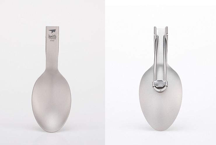 A well-crafted folding titanium spoon with a proper scoop. The spoon has a length of 12 cm when packed.