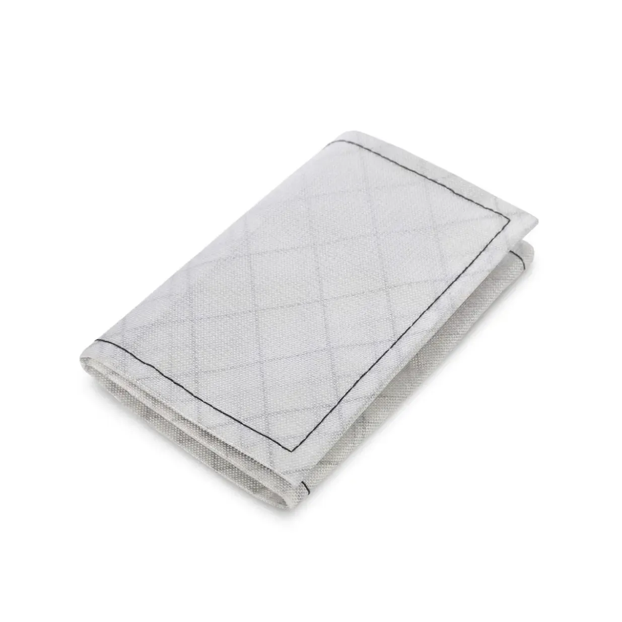 Stylish ultralight wallet made from hi-tech materials such as Ultra and DCF (Dyneema). The wallet features four card slots, a zippered compartment for coins, a cash compartment, and a carabiner for attachment.
