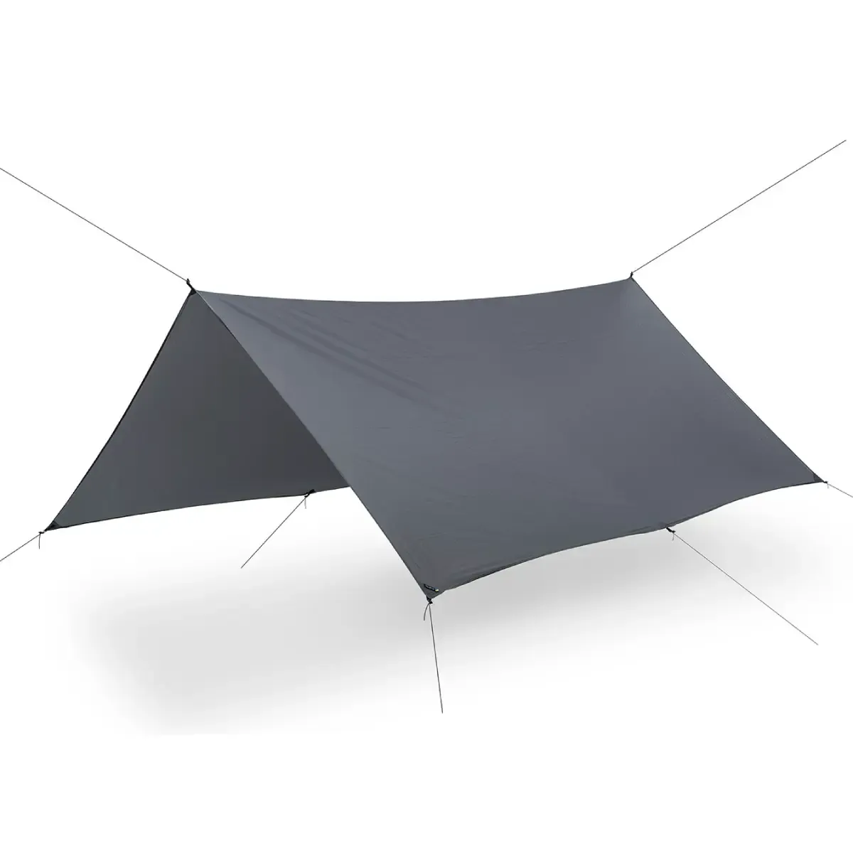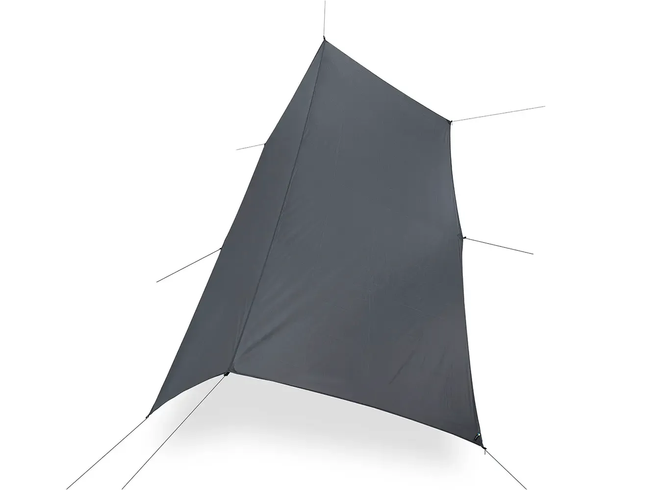 Liteway Biggie Tarp is an ultralight square tarp perfect for 1-2 people who prioritize low weight and small packed size. The tarp is made from siliconized polyester. In the corners, there are Line-loc tensioners with anchor cords for easy setup and tensioning of the tarp.