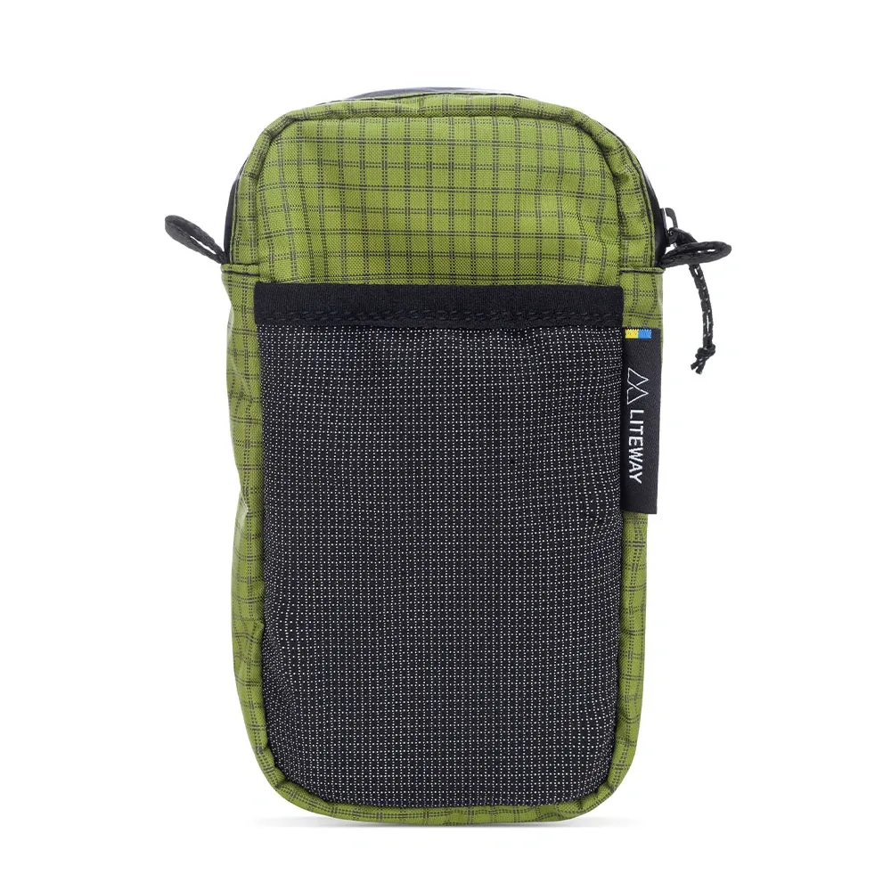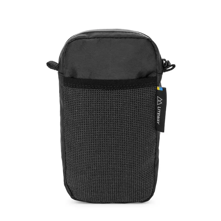 Ultralight and simple add-on pocket for the shoulder strap of your backpack. The Lite Pocket from Liteway is made from lightweight, durable, and waterproof material. It has a main compartment and a front mesh pocket.