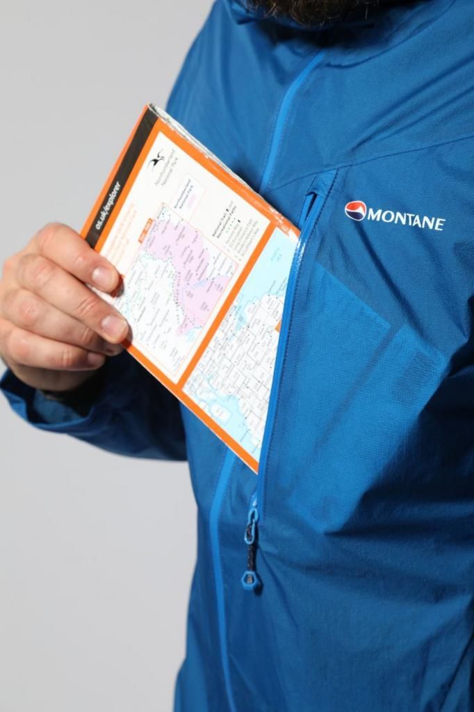 A spacious chest pocket can hold a map and other small items. It is protected by a waterproof zipper.