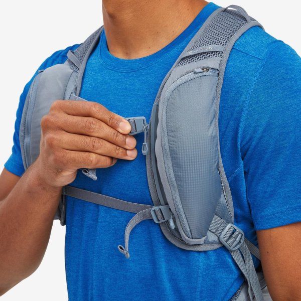 The backpack features two height-adjustable elastic chest straps with Click and Go fastening, ensuring quick and easy adjustments for enhanced stability and security during fast-paced movement.