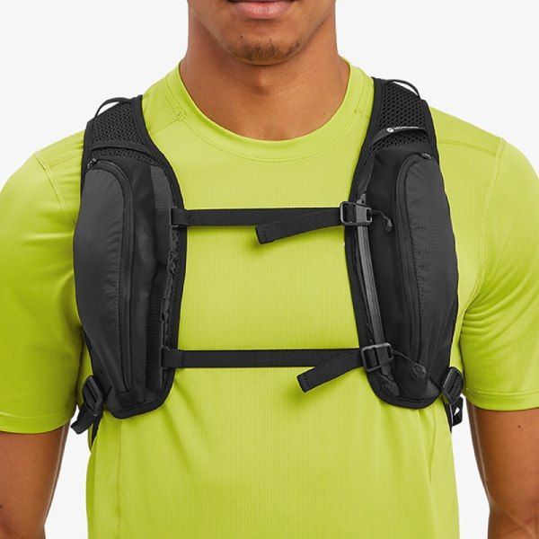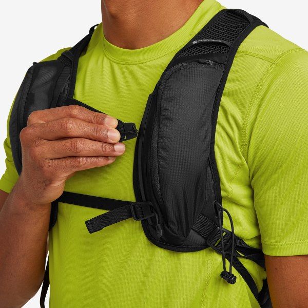 The backpack features two height-adjustable elastic chest straps with Click and Go fastening, ensuring quick and easy adjustments for enhanced stability and security during fast-paced movement.