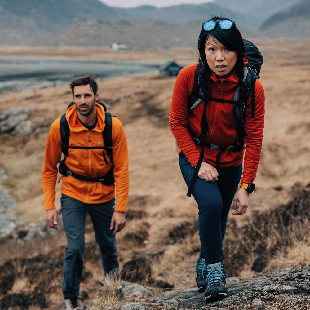 The hoodie has a fitted cut for active movement in the mountains, so if you have a more athletic muscular build, it might be better to choose a larger size.