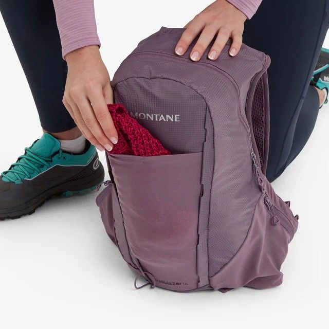 The Montane brand has introduced a range of updates and improvements in its 2024 collection of the legendary Trailblazer backpacks. The backpacks are now made from recycled materials, with the most significant changes in pocket design, pack access, and a new T-Hook attachment system. This T-Hook system allows relocation of fastening points using hooks that fit into multiple attachment slots along the front panel's sides. The Women's Trailblazer 16 backpack (2024) features a new front mesh stretch pocket, building upon the success of its predecessor, the Women’s Trailblazer 16 model.
