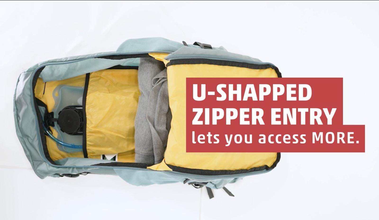 A long U-shaped zipper on the back panel allows quick and easy access to the main compartment, so you can get exactly what you need without unpacking everything.