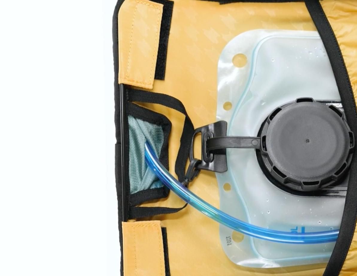 The interior is lined with light-colored recycled nylon, which significantly improves visibility inside the pack, making it easier to locate your gear.