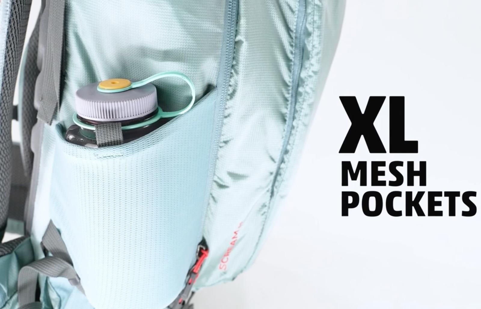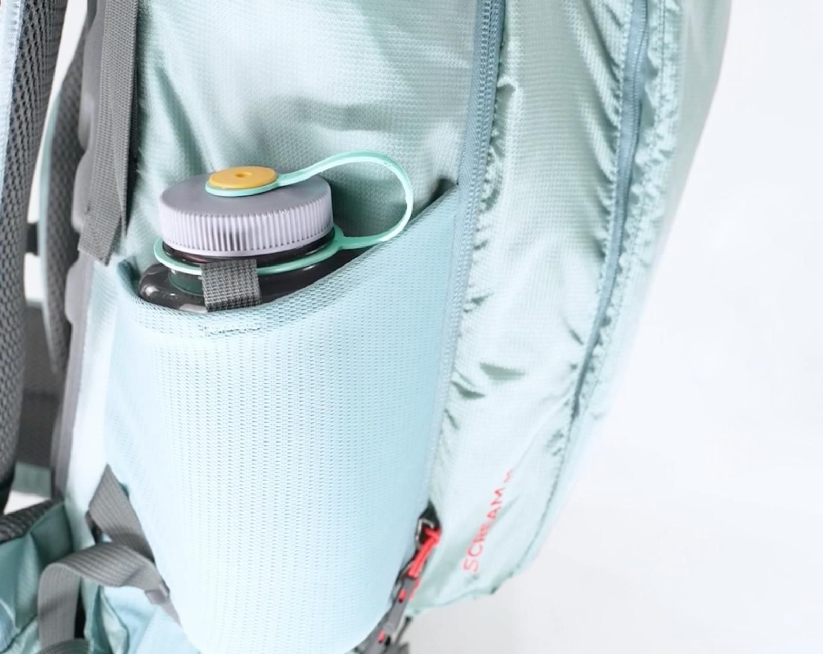 The side compression straps and large side pockets easily accommodate two 1-liter bottles or one larger bottle.