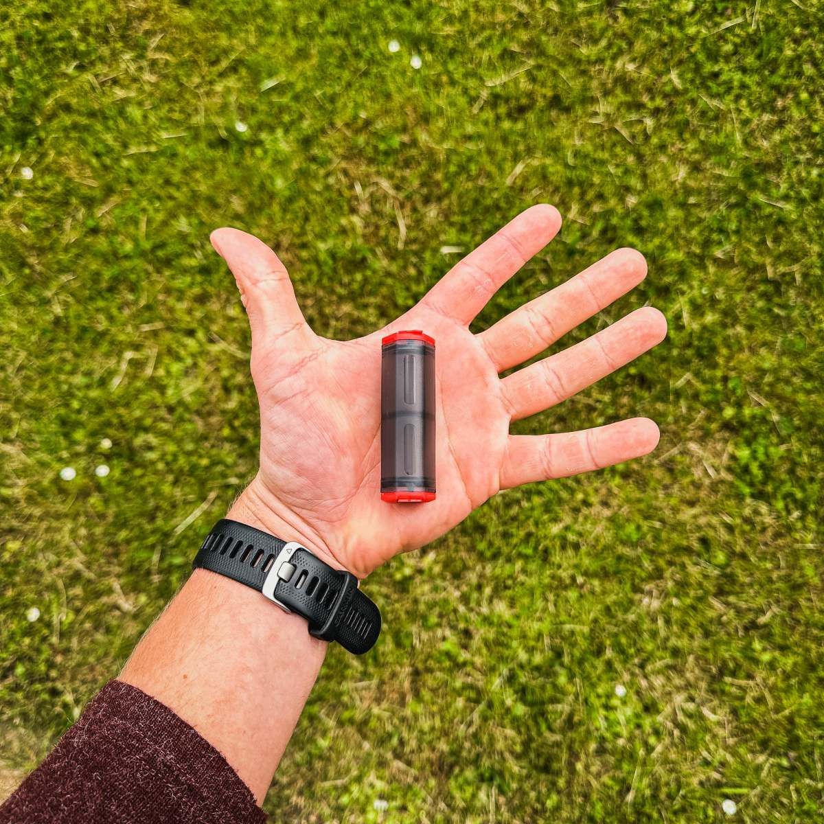 Miniature salt and pepper shaker in one. Two-chamber container with a divider that holds two different spices. Rubber seals on all openings protect the contents from moisture. Made from durable BPA-free plastic.